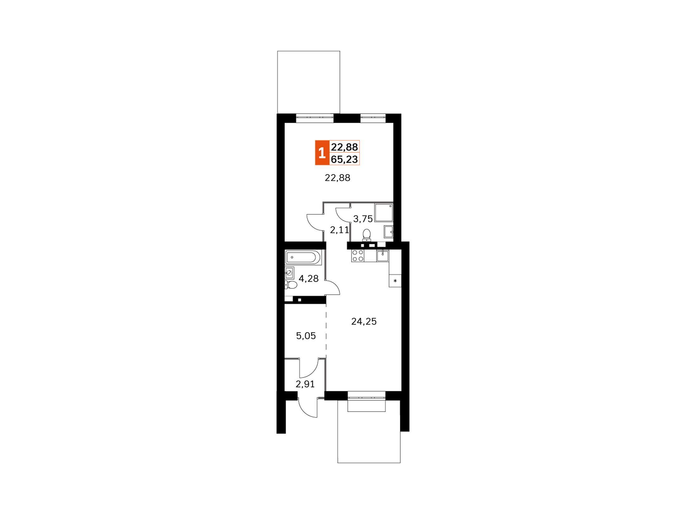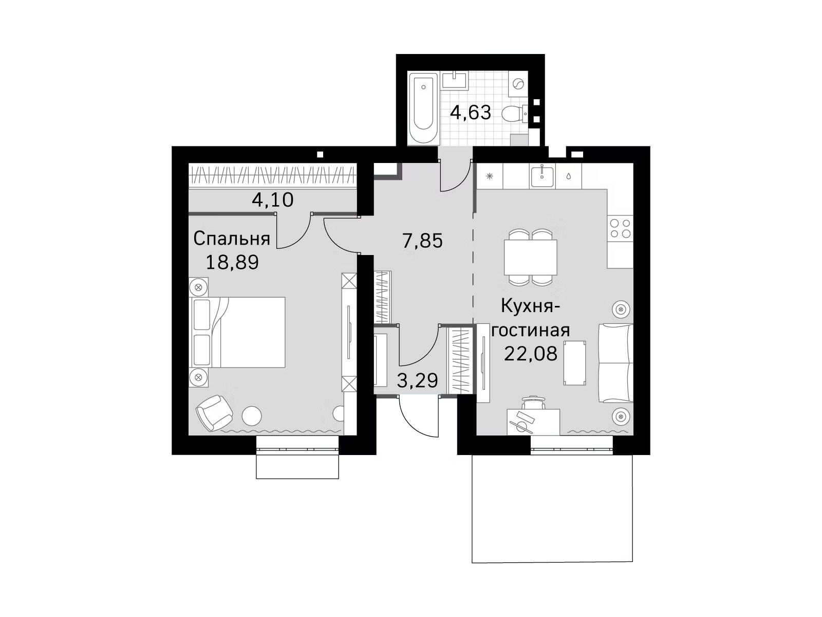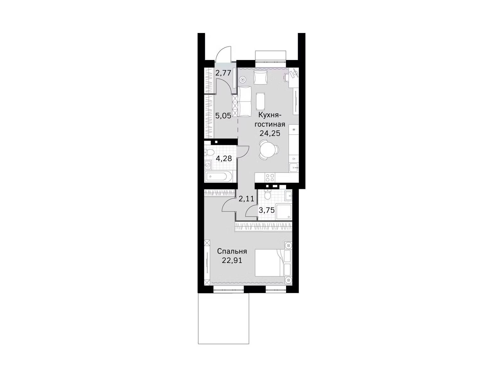 1-комнатная квартира, 28.97 м², 2 из 4 эт.