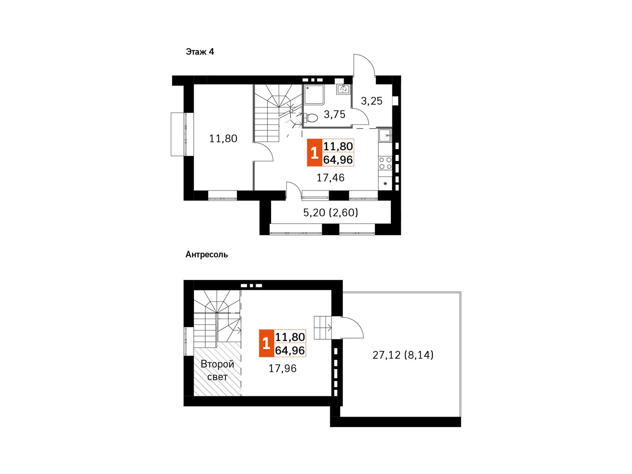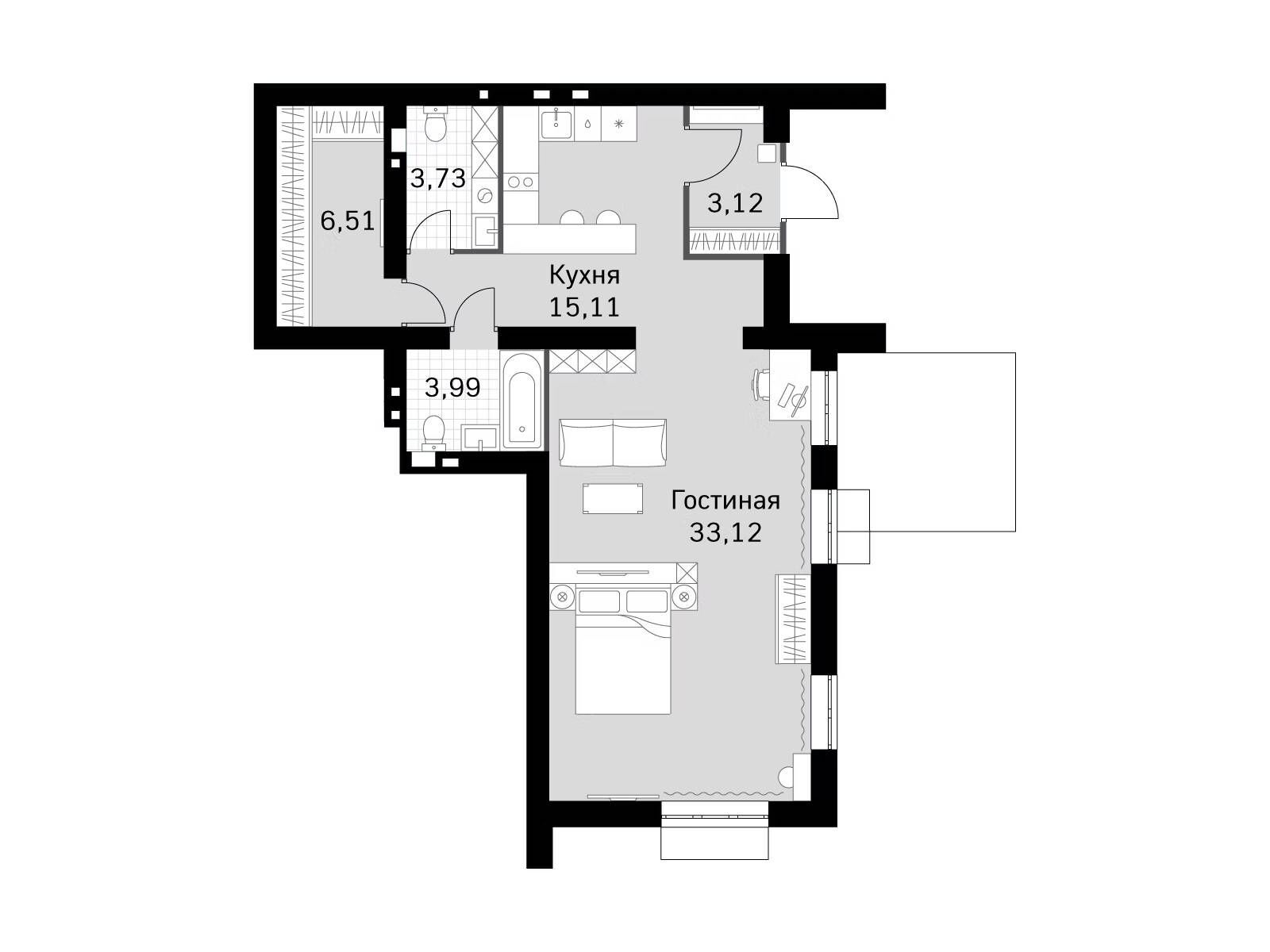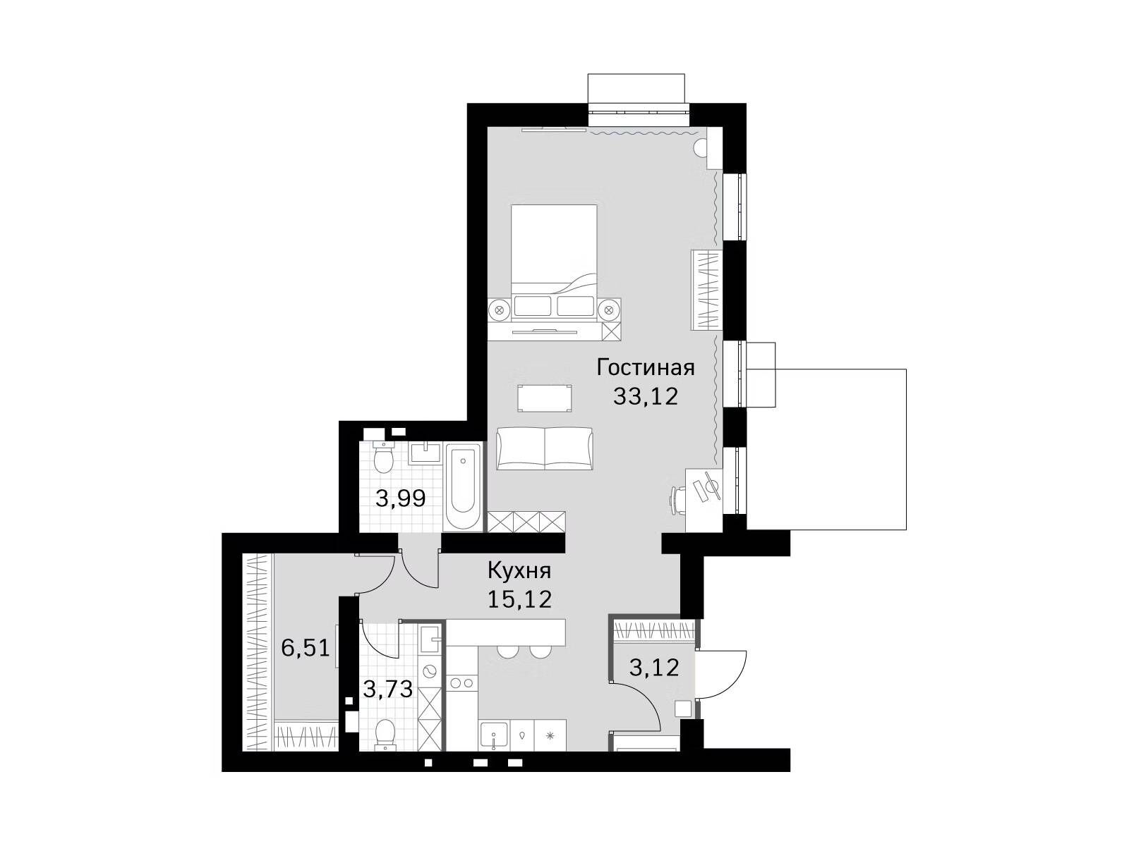1-комнатная квартира, 28.97 м², 2 из 4 эт.