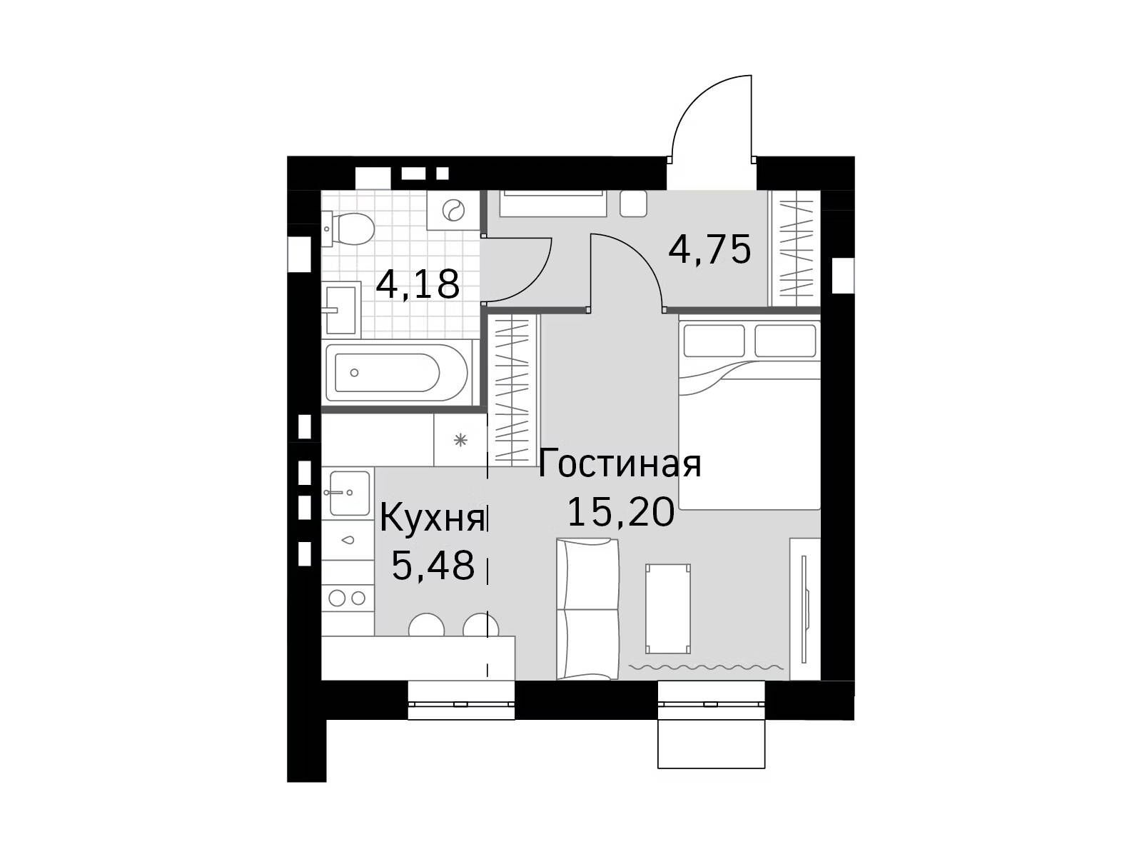 Студия, 28.91 м²