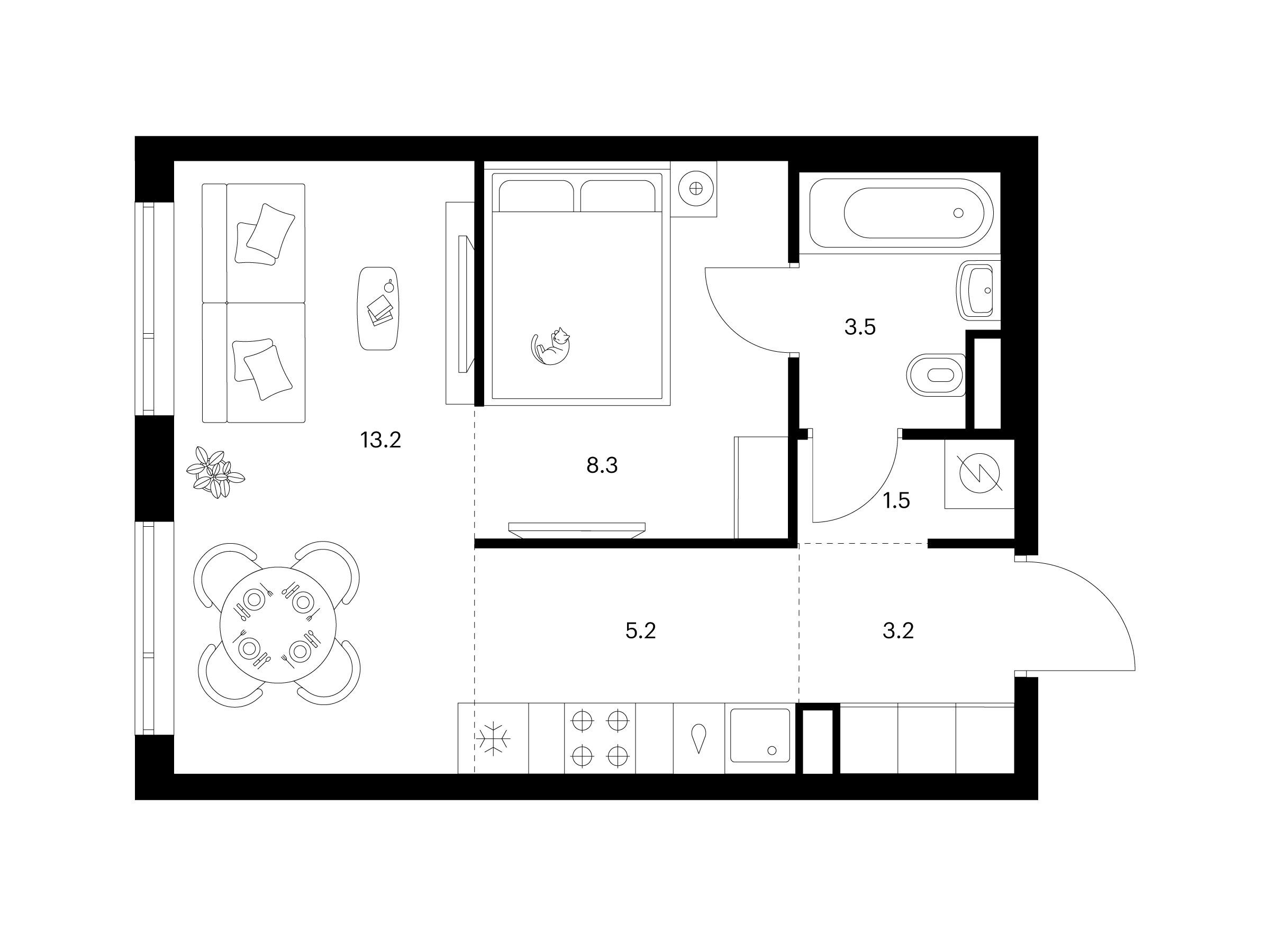 1-комнатная, 36.30 м²