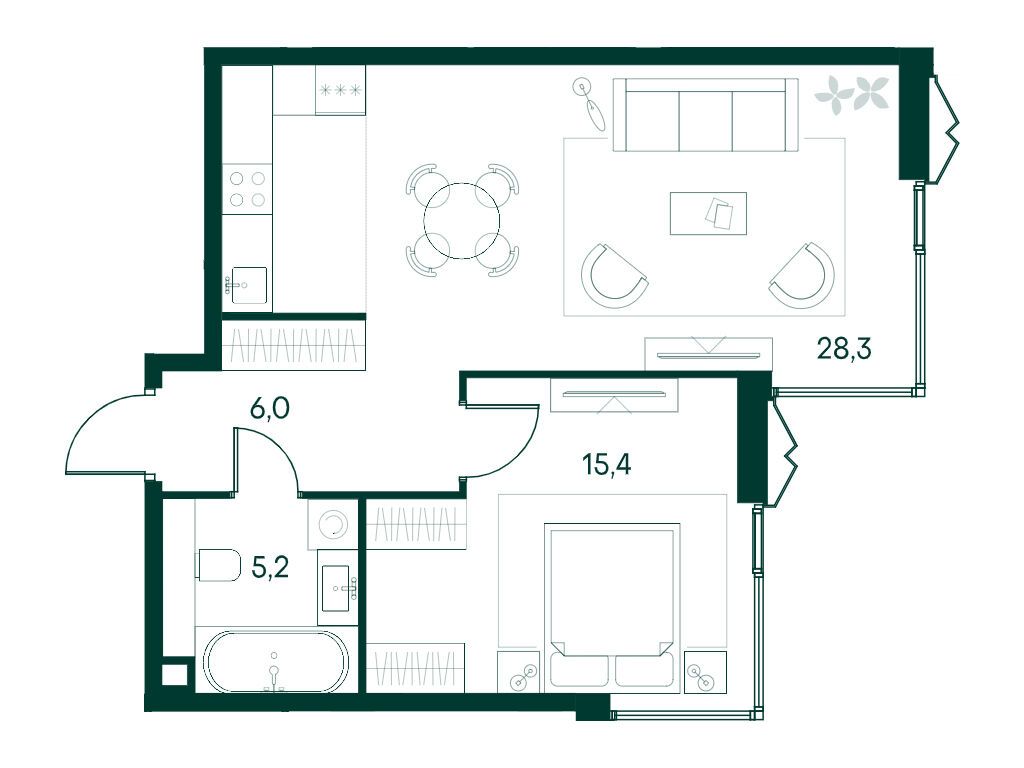 1-комнатная квартира, 51.90 м², 3 из 20 эт.
