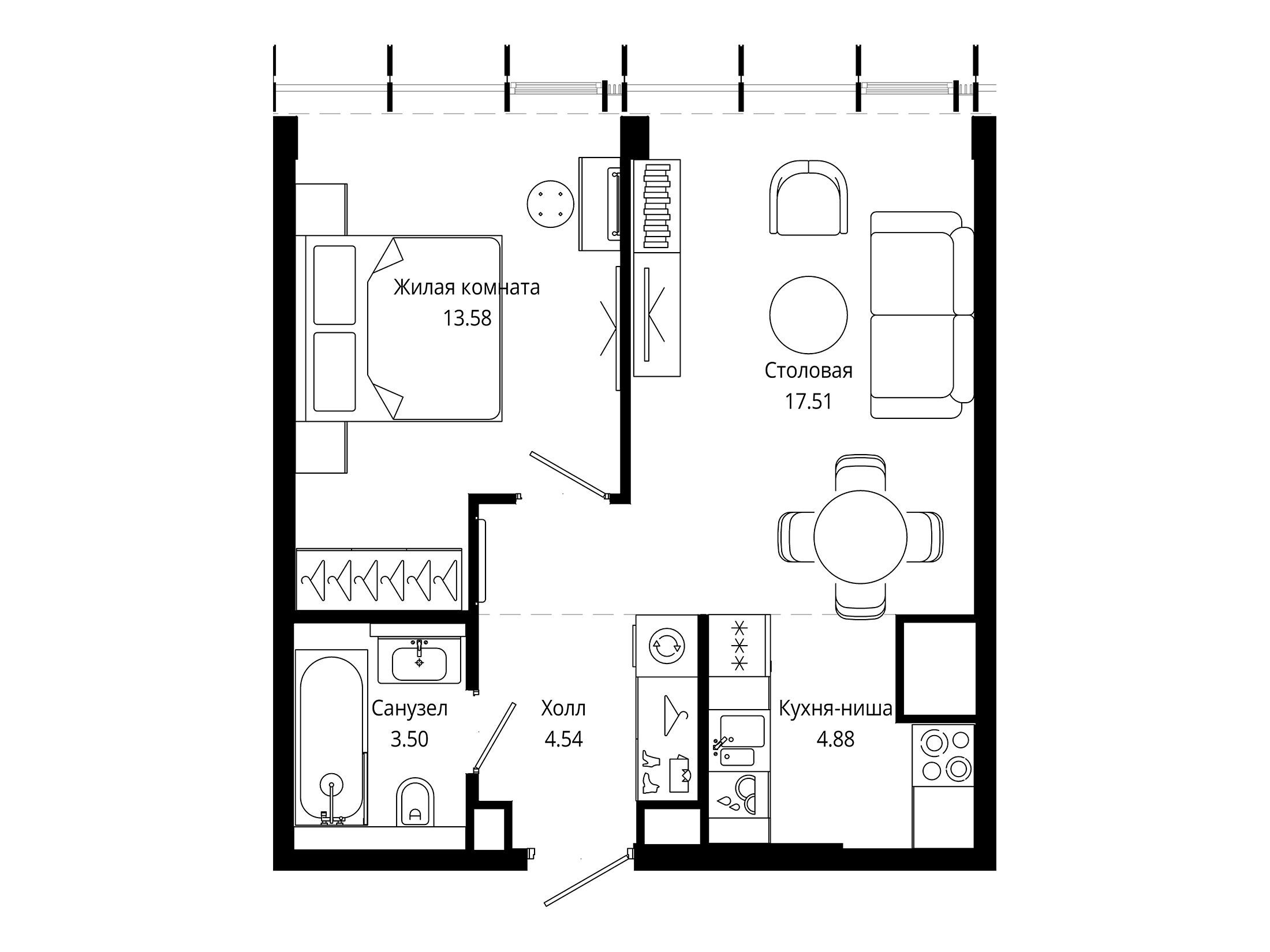 1-комнатная квартира, 44.00 м², 54 из 55 эт.