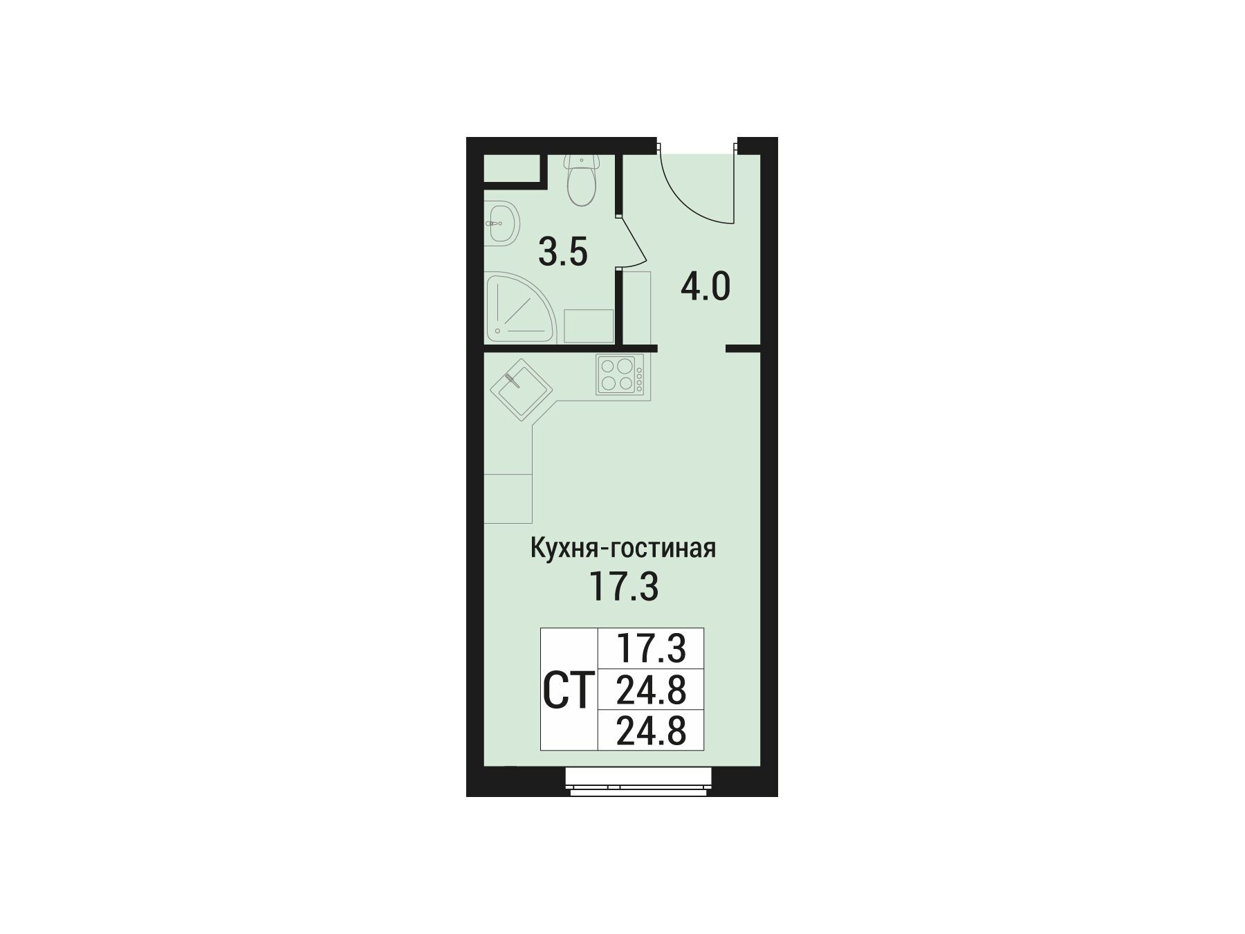 Студия, 26.60 м²