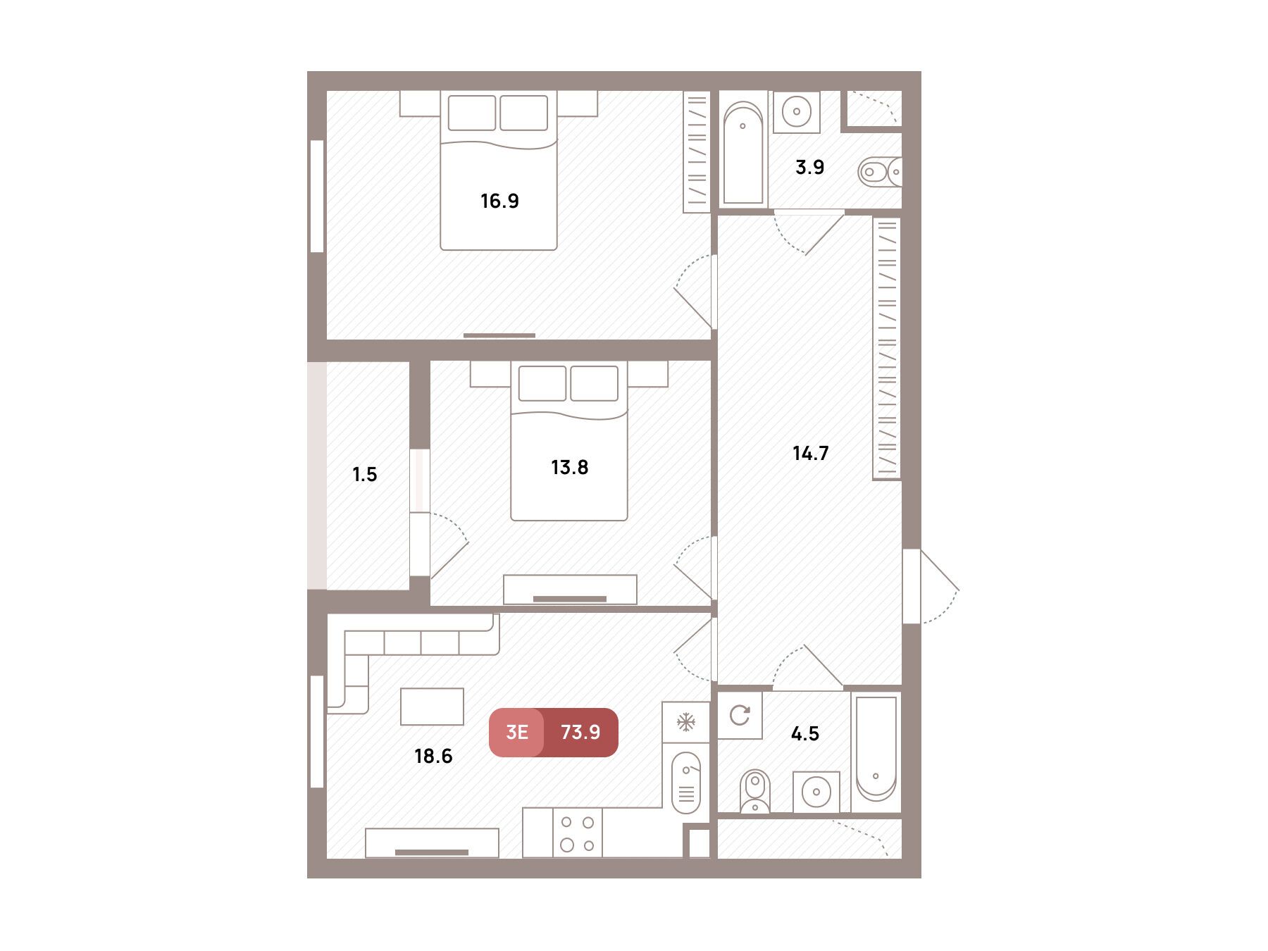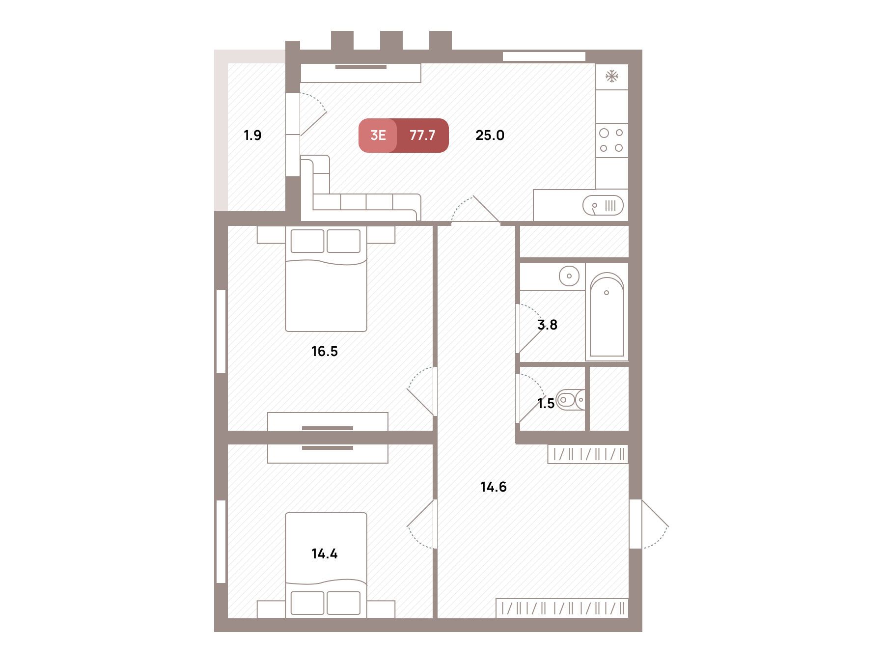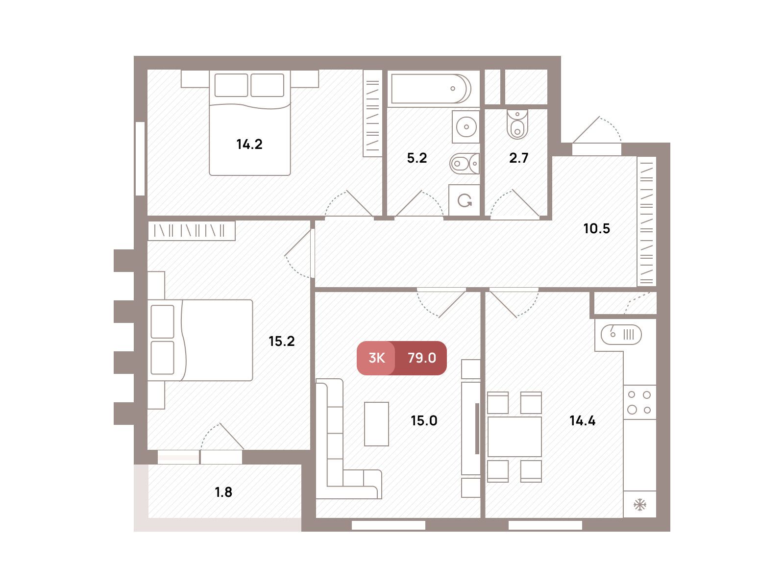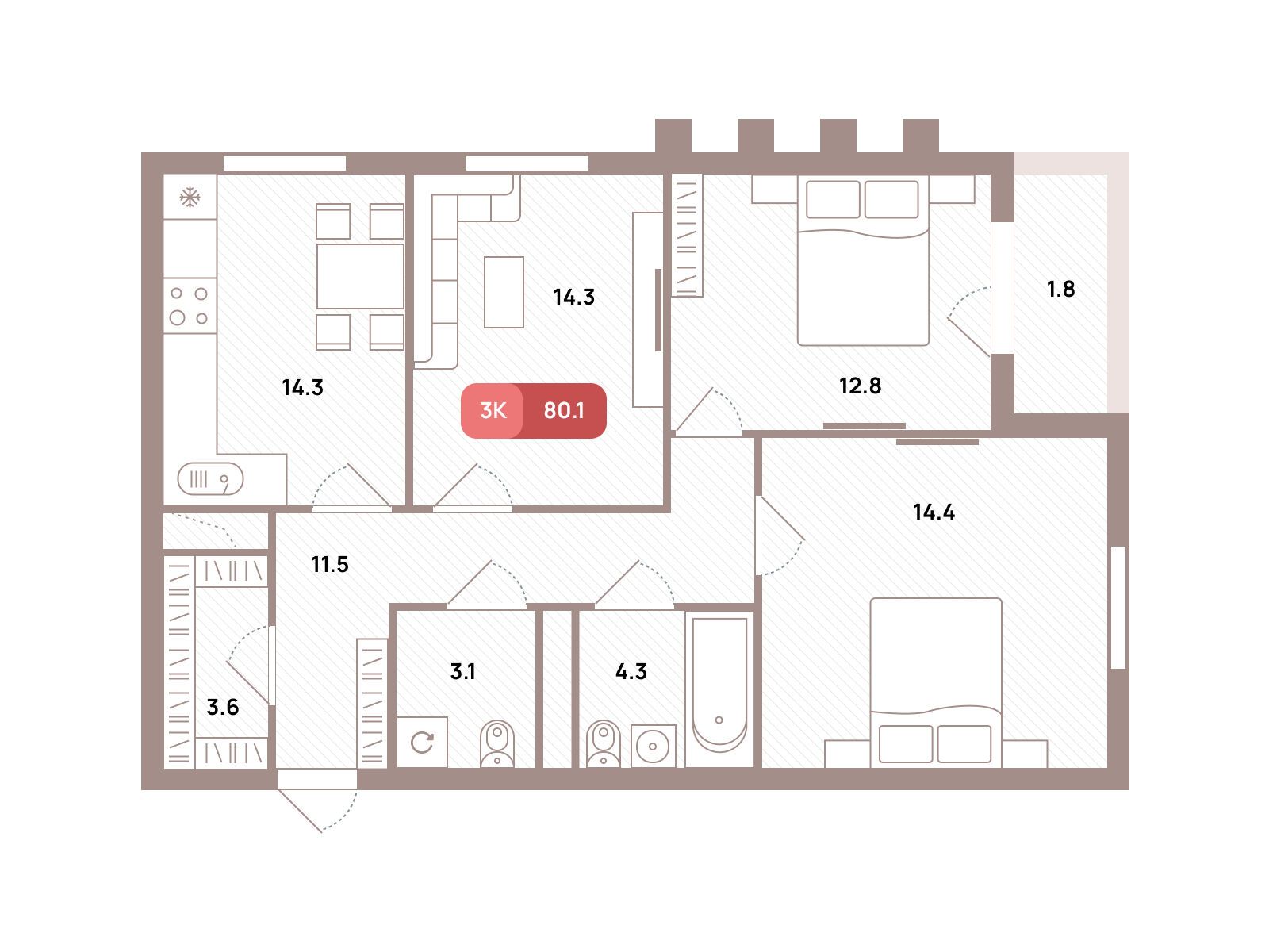 3-комнатная квартира, 80.10 м², 27 из 32 эт.