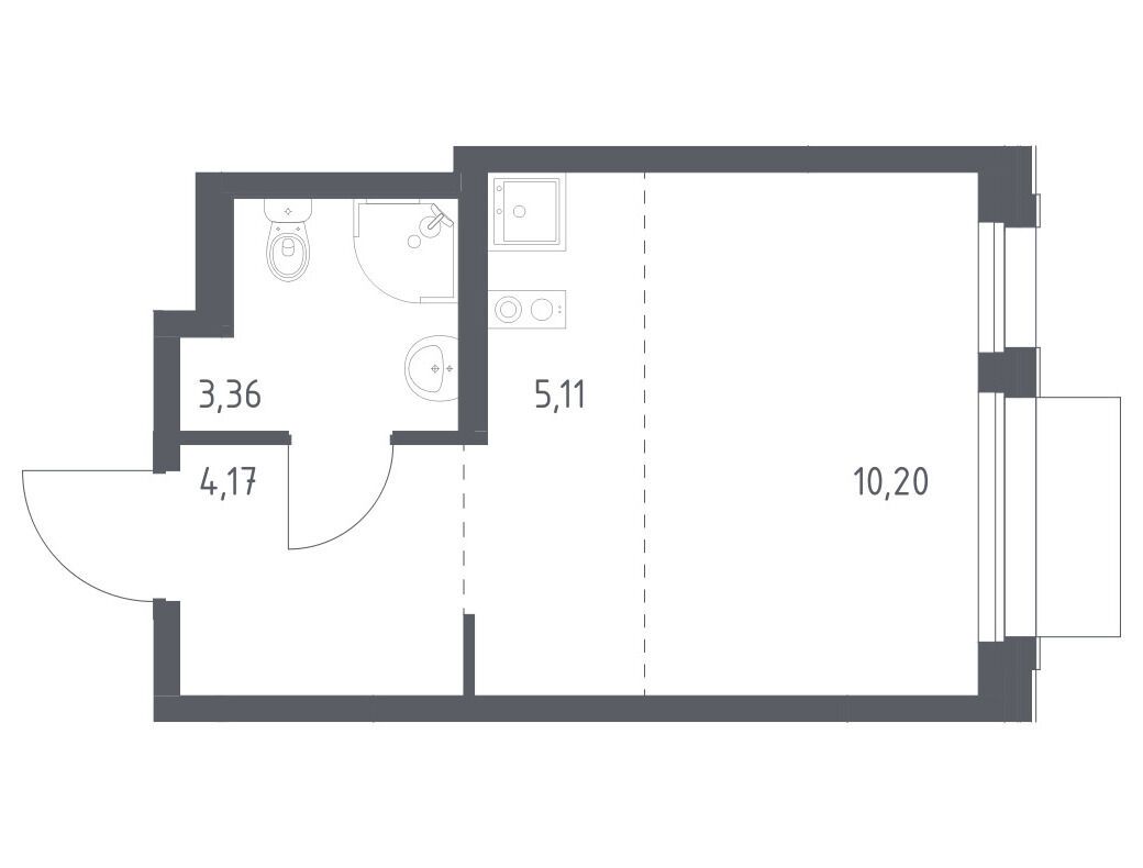 Студия, 23.22 м²