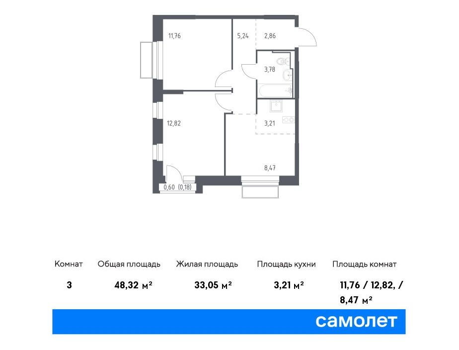 2-комнатная квартира, 53.04 м², 3 из 25 эт.