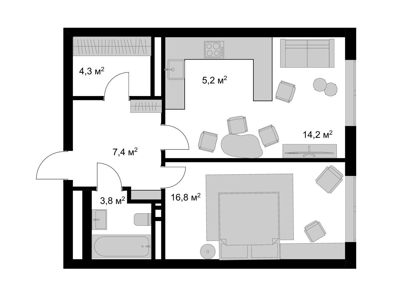2-комнатная квартира, 46.60 м², 13 из 17 эт.
