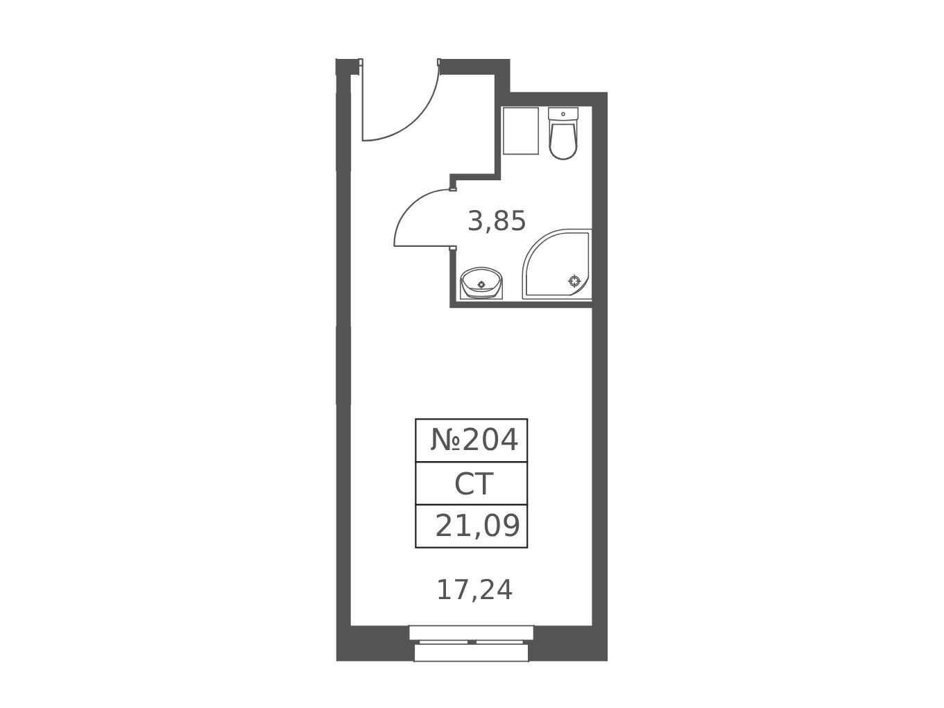 Студия, 21.10 м²