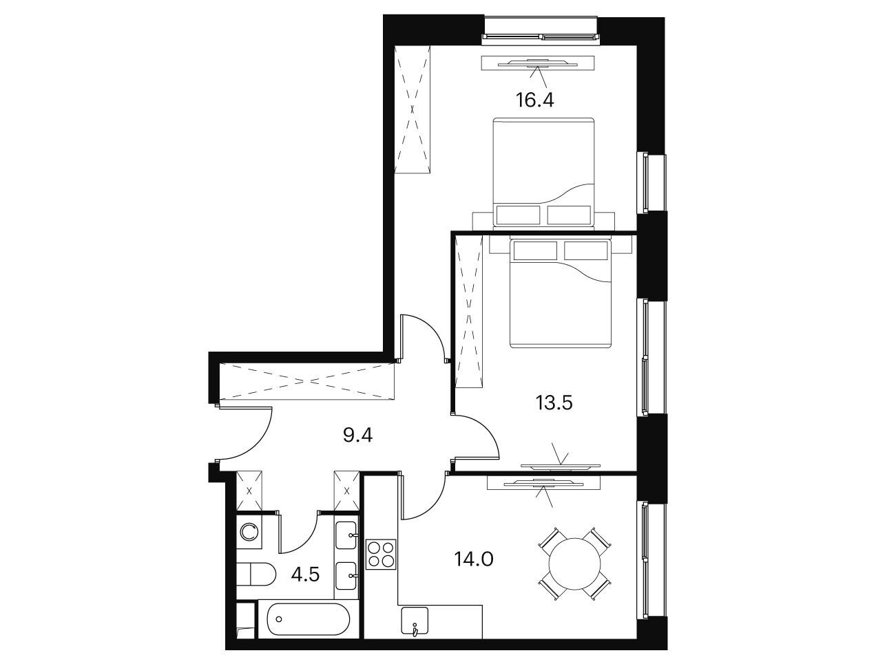 2-комнатная квартира, 67.00 м², 21 из 23 эт.