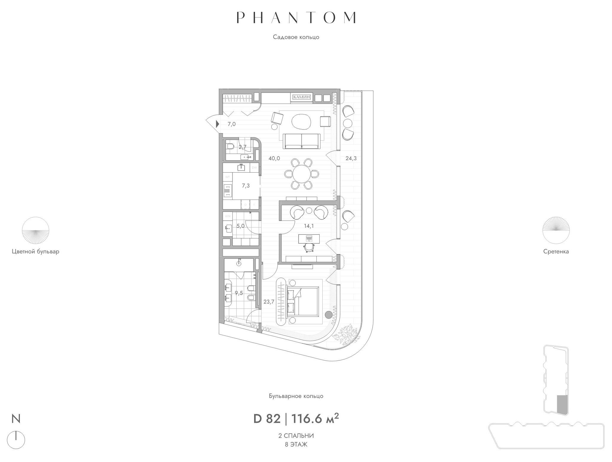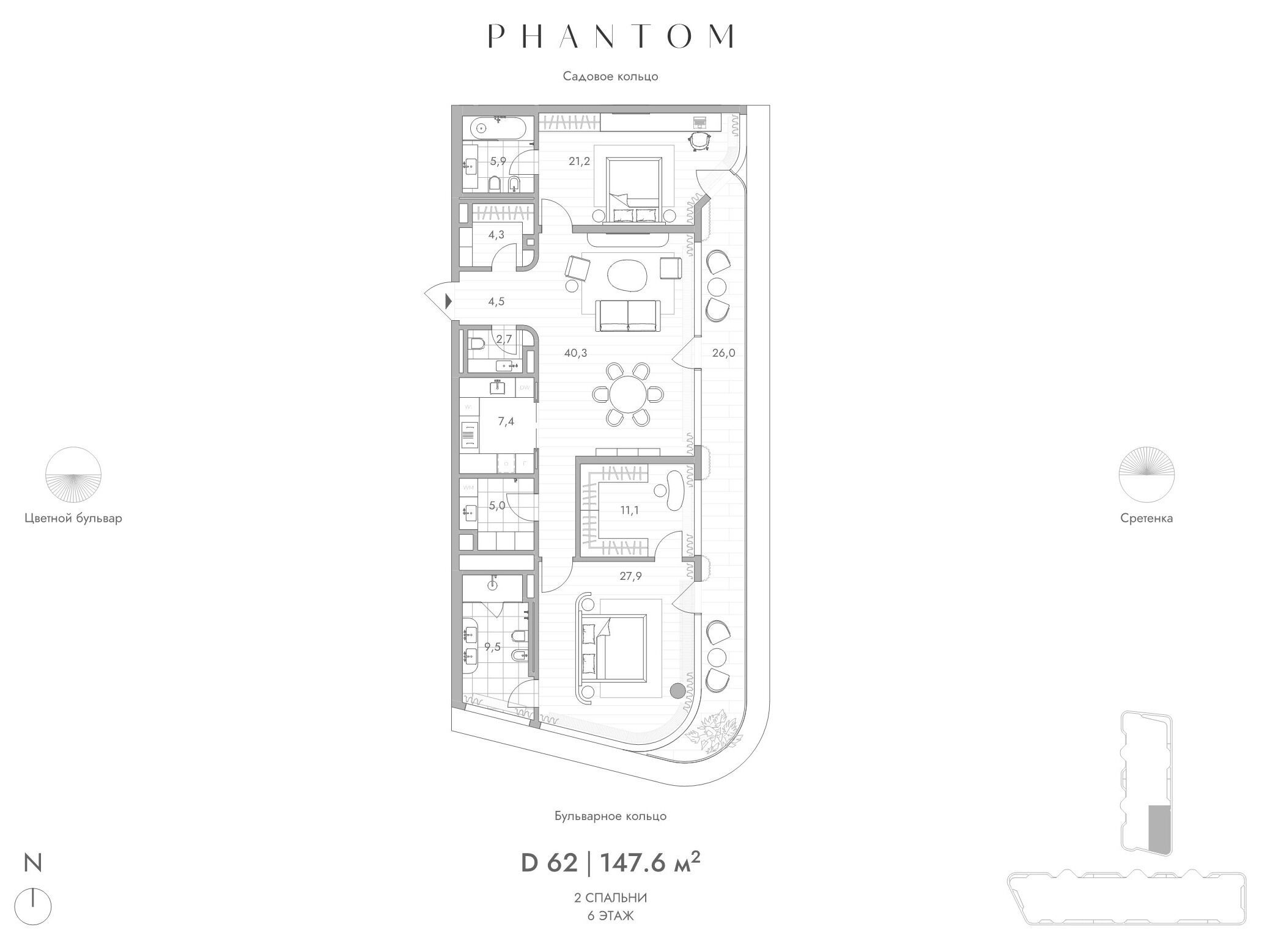 2-комнатная квартира, 146.60 м², 7 из 9 эт.