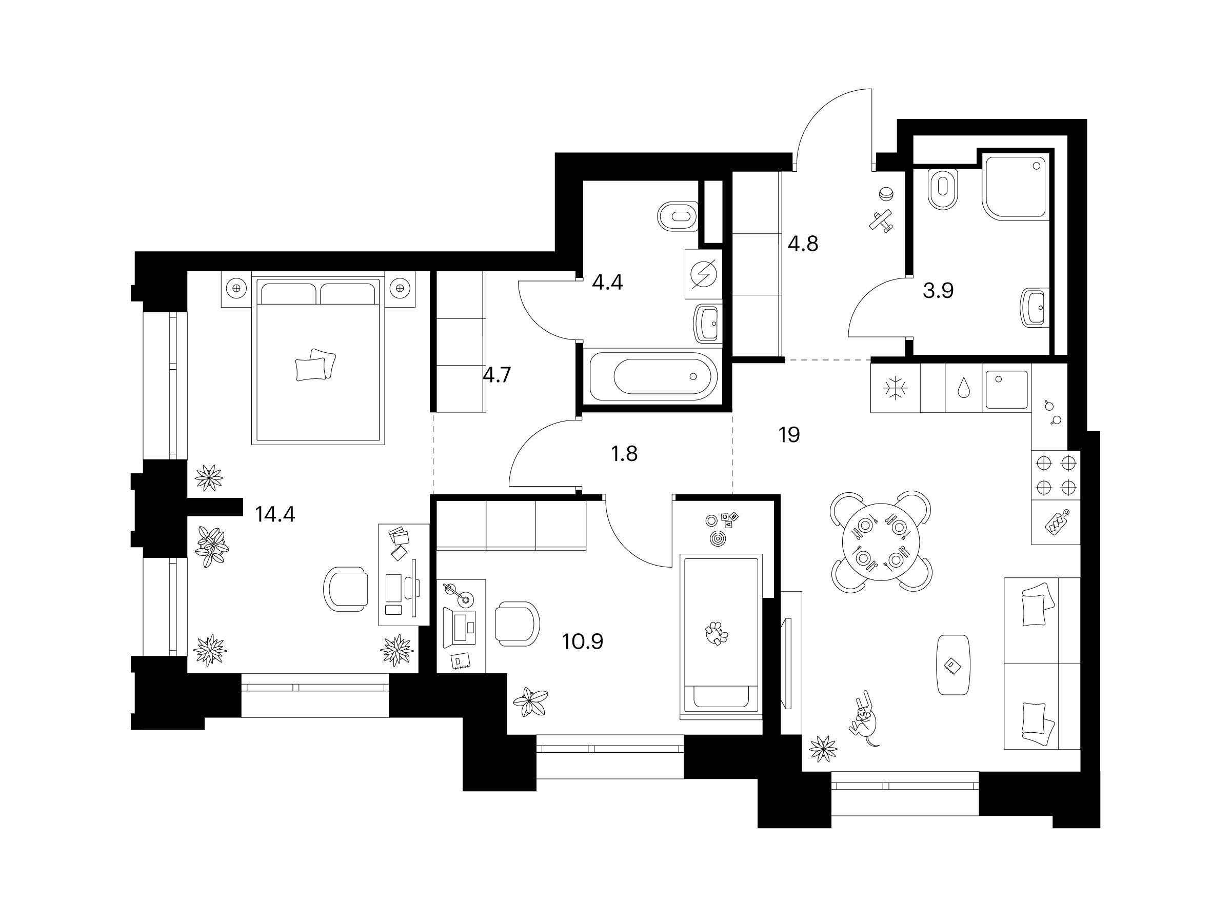 2-комнатная, 51.40 м²