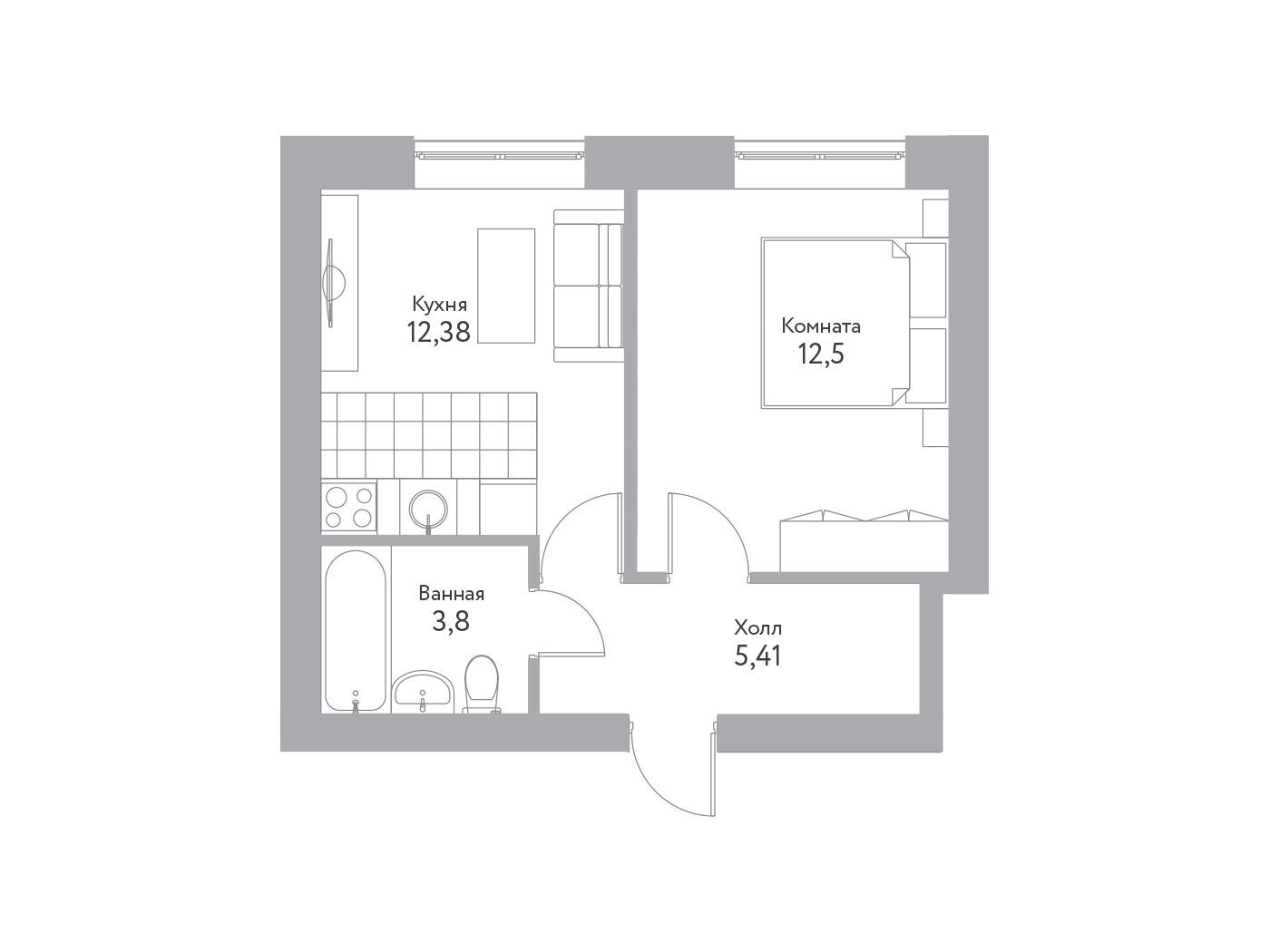 1-комнатная, 35.10 м²