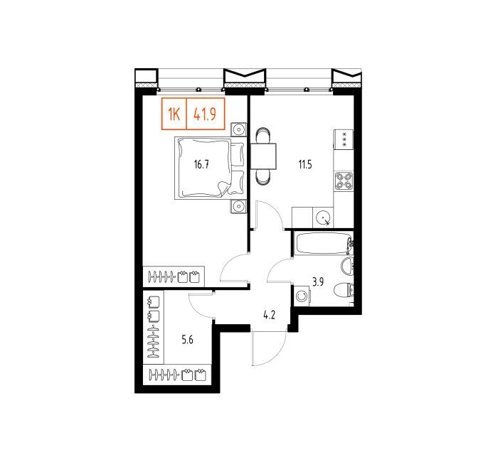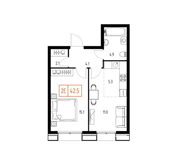 1-комнатная квартира, 41.40 м², 8 из 10 эт.