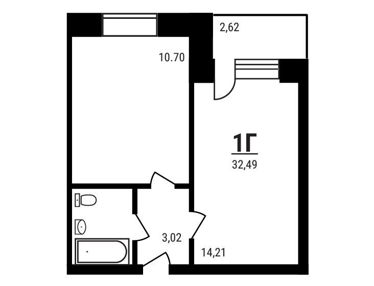 1-комнатная, 32.34 м²