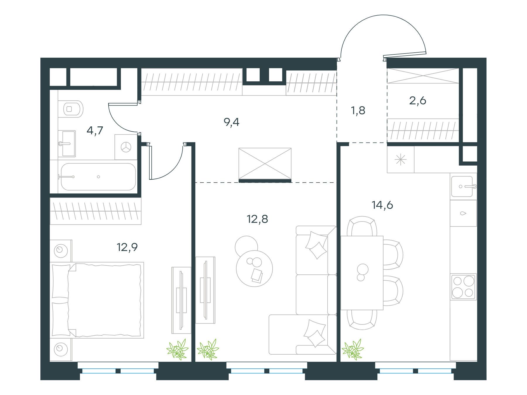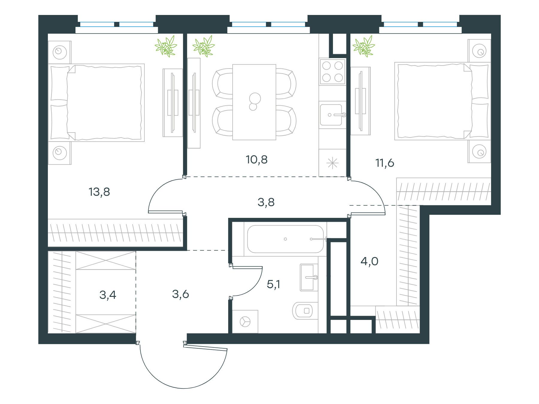 2-комнатная, 40.80 м²
