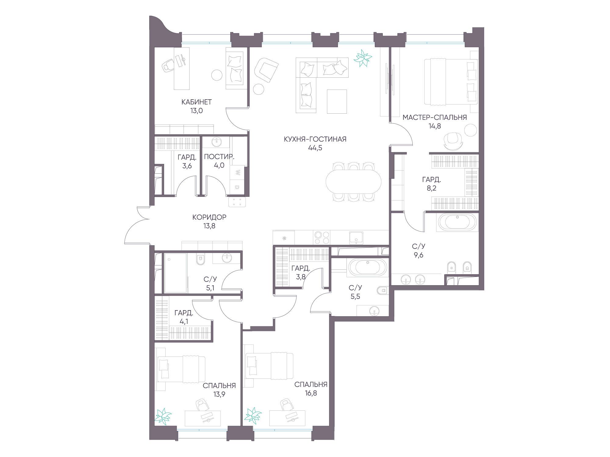 4-комнатная квартира, 152.10 м², 7 из 11 эт.