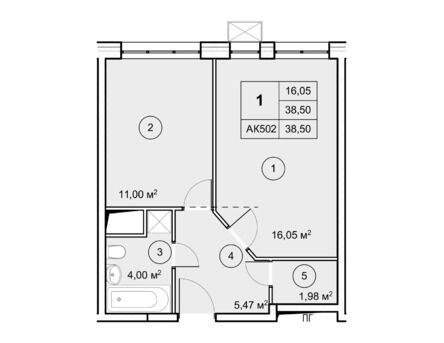 1-комнатная, 38.90 м²