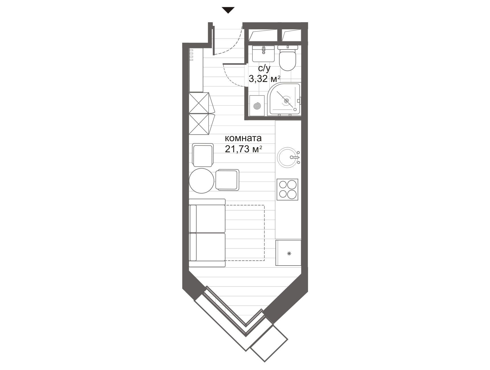 Студия, 34.10 м²