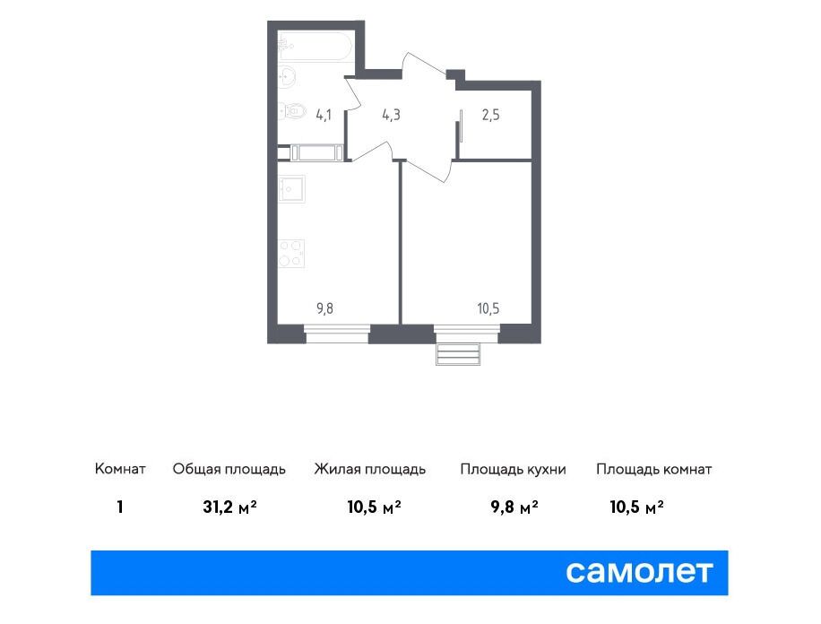 1-комнатная квартира, 33.90 м², 12 из 22 эт.