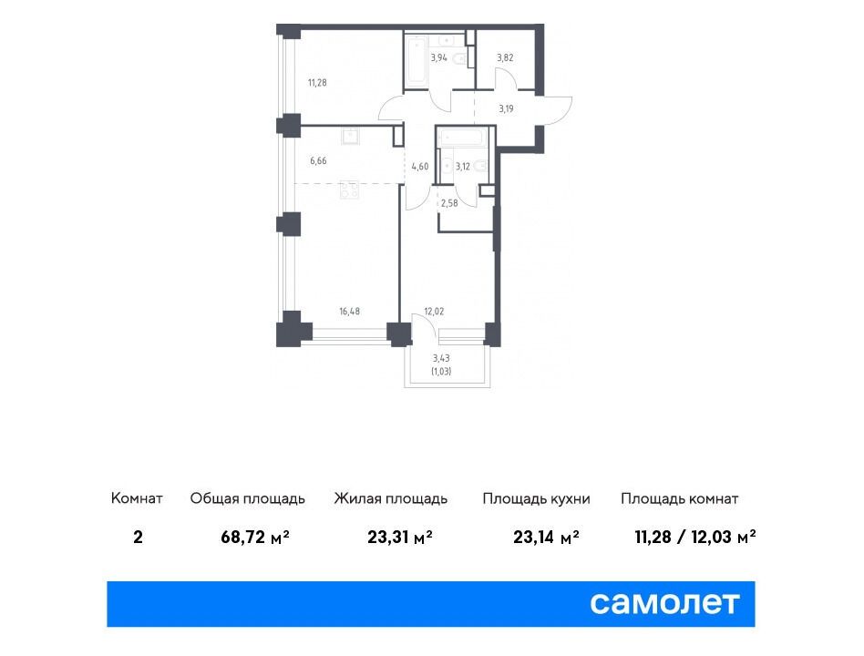 2-комнатная квартира, 67.50 м², 2 из 40 эт.