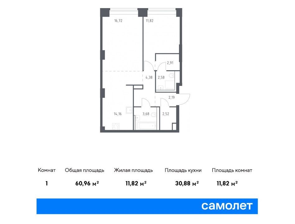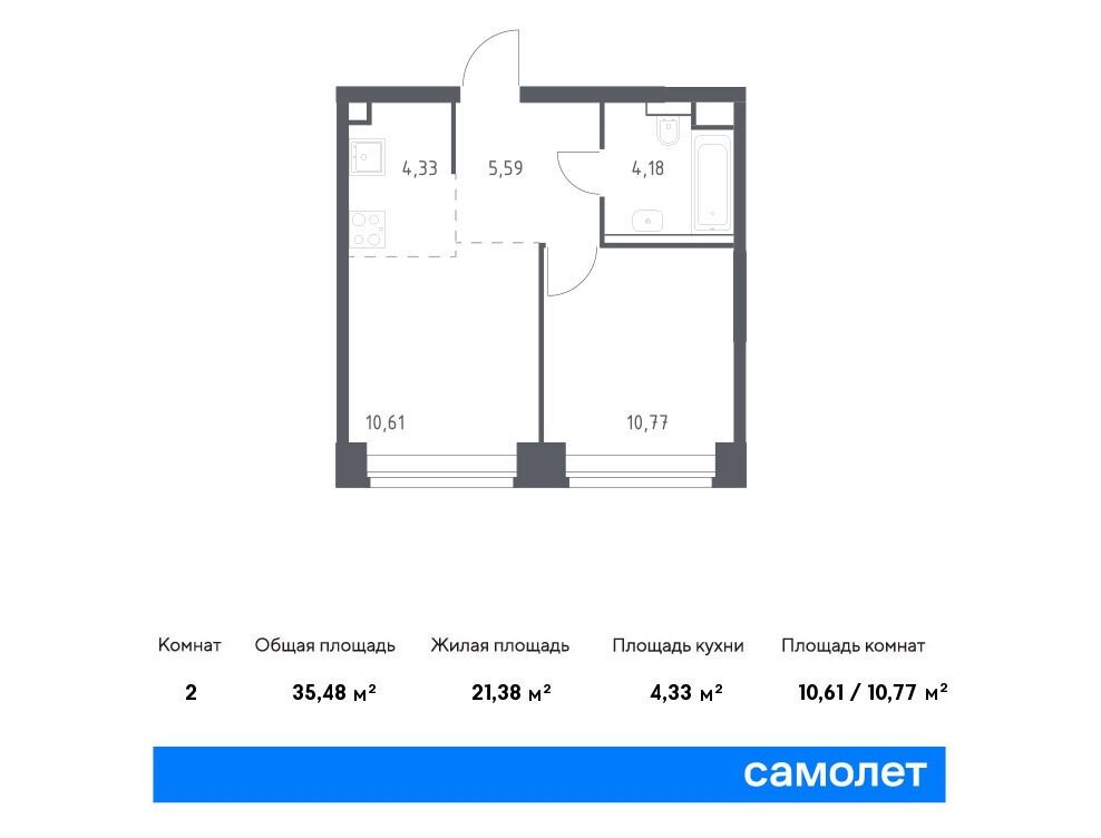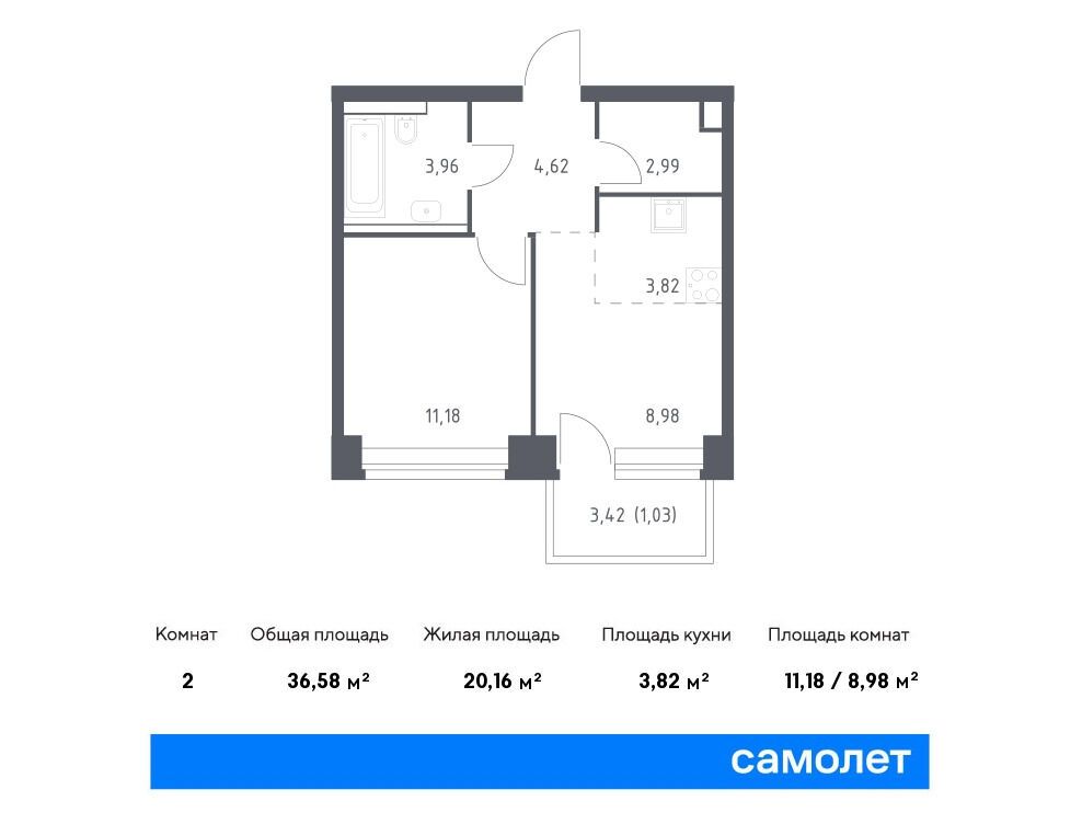 1-комнатная квартира, 36.70 м², 4 из 40 эт.
