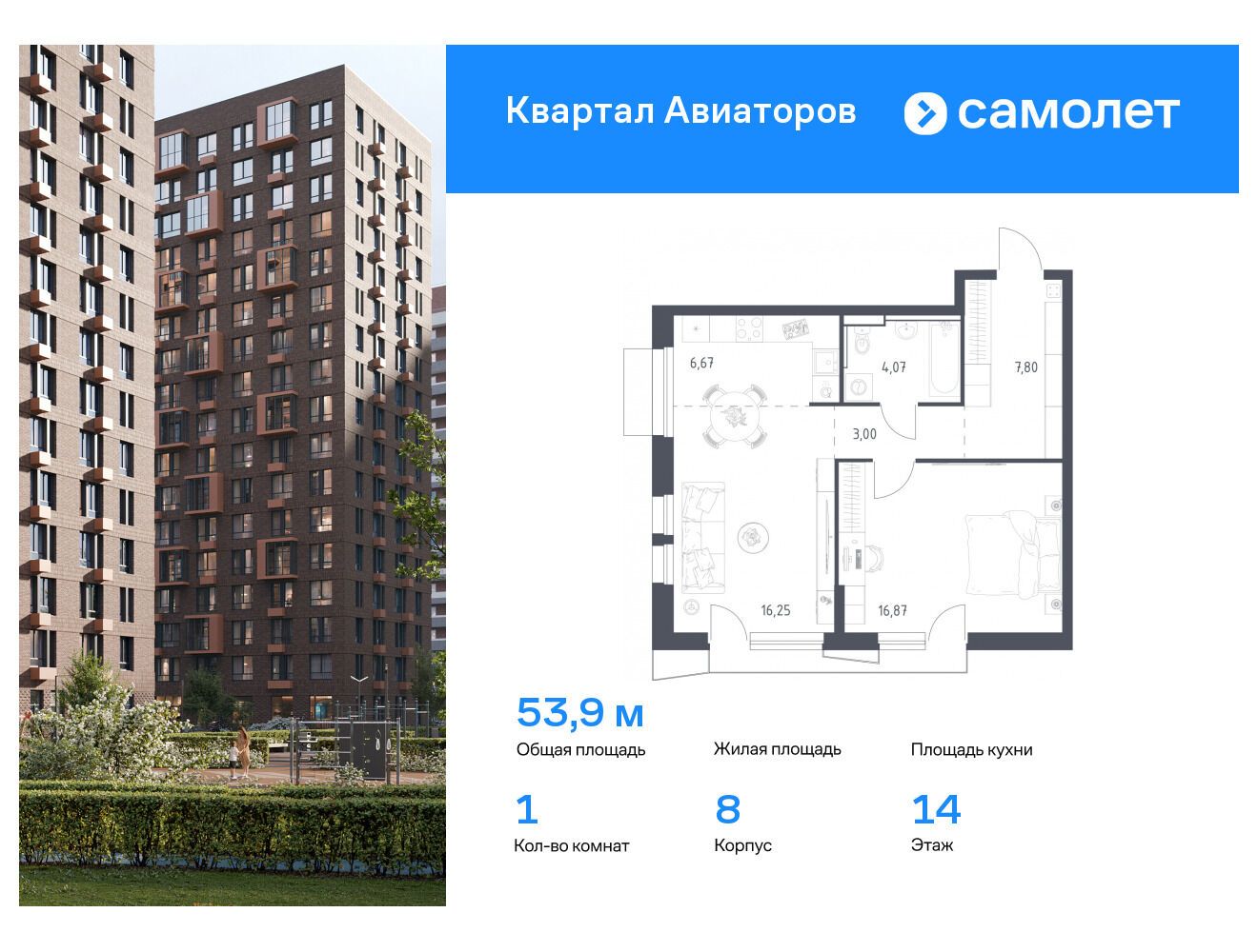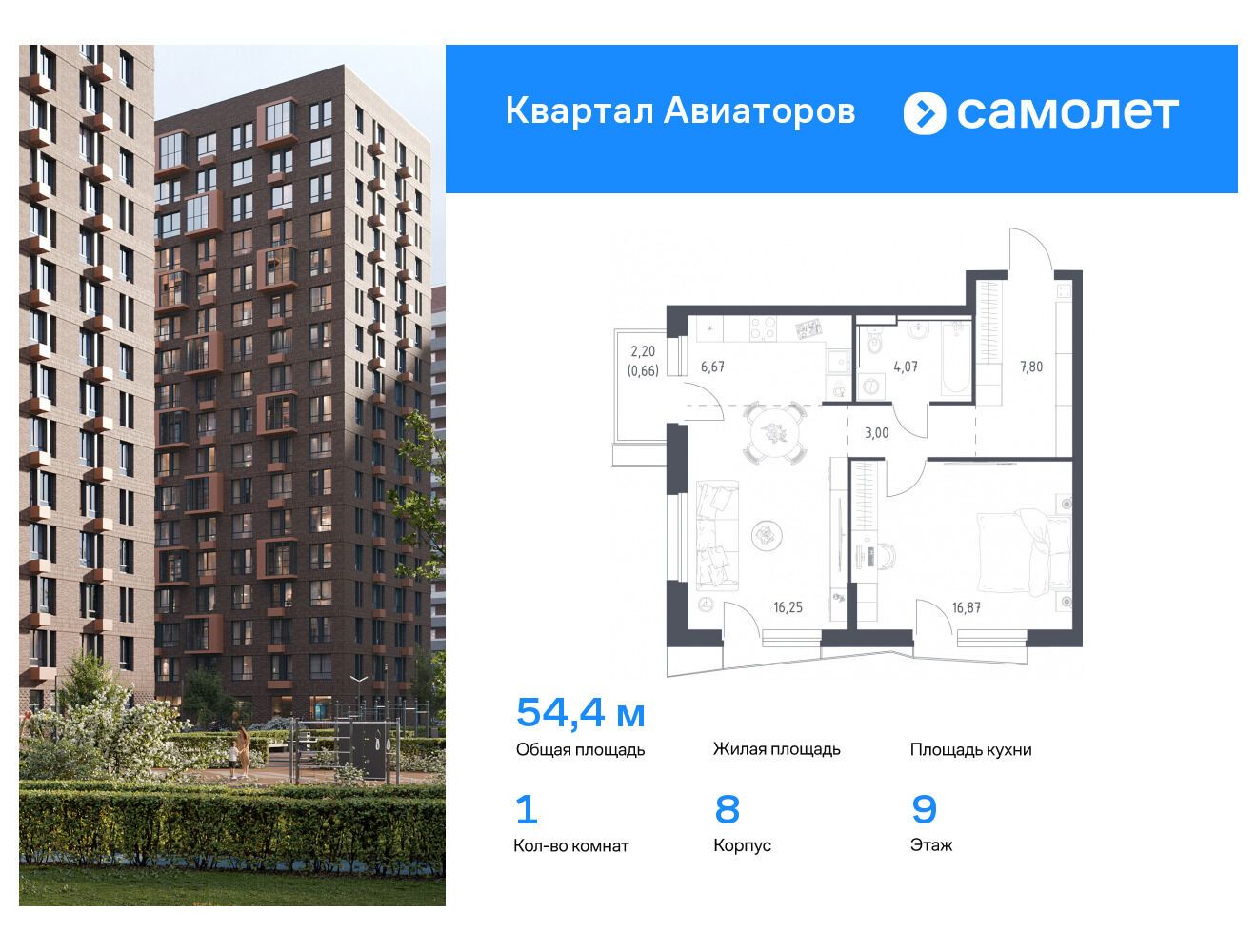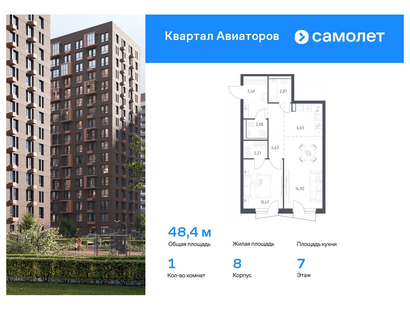 1-комнатная квартира, 48.70 м², 10 из 24 эт.