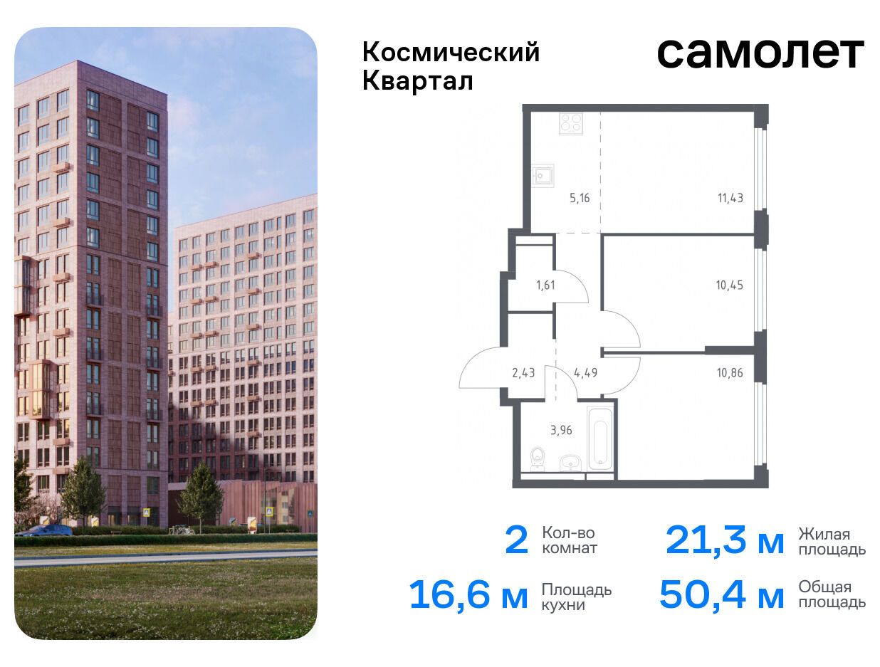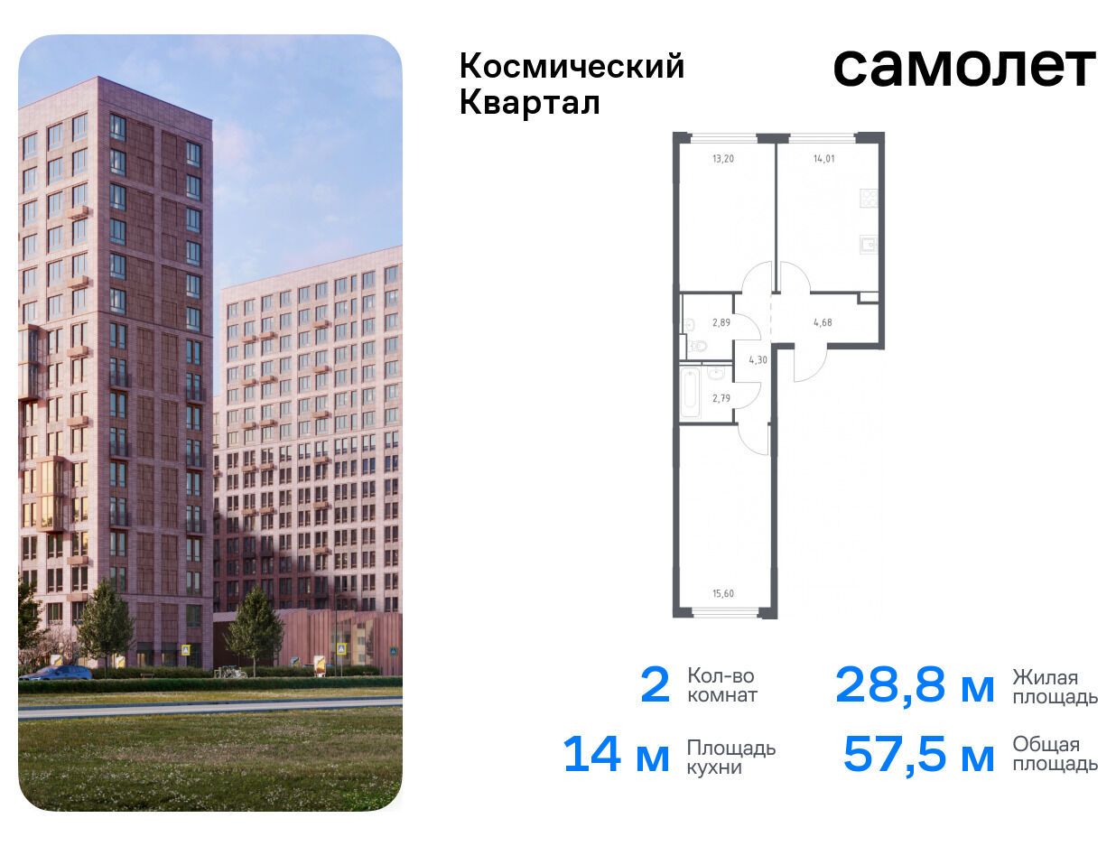 2-комнатная квартира, 58.93 м², 2 из 17 эт.