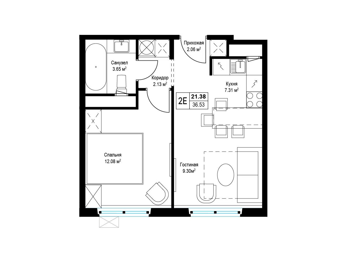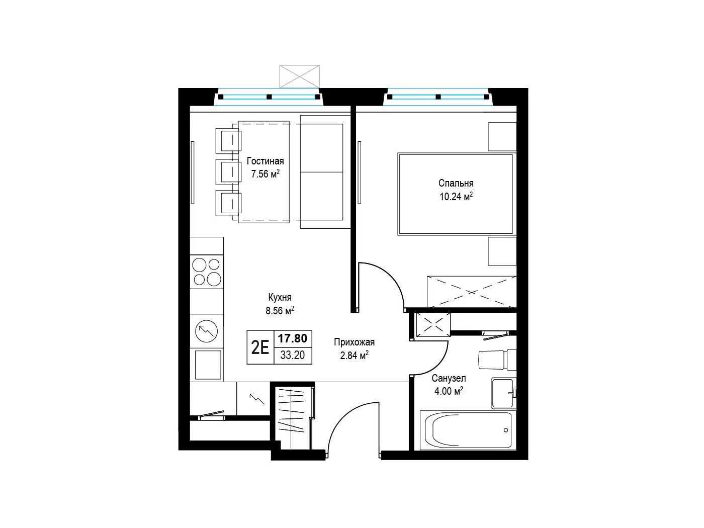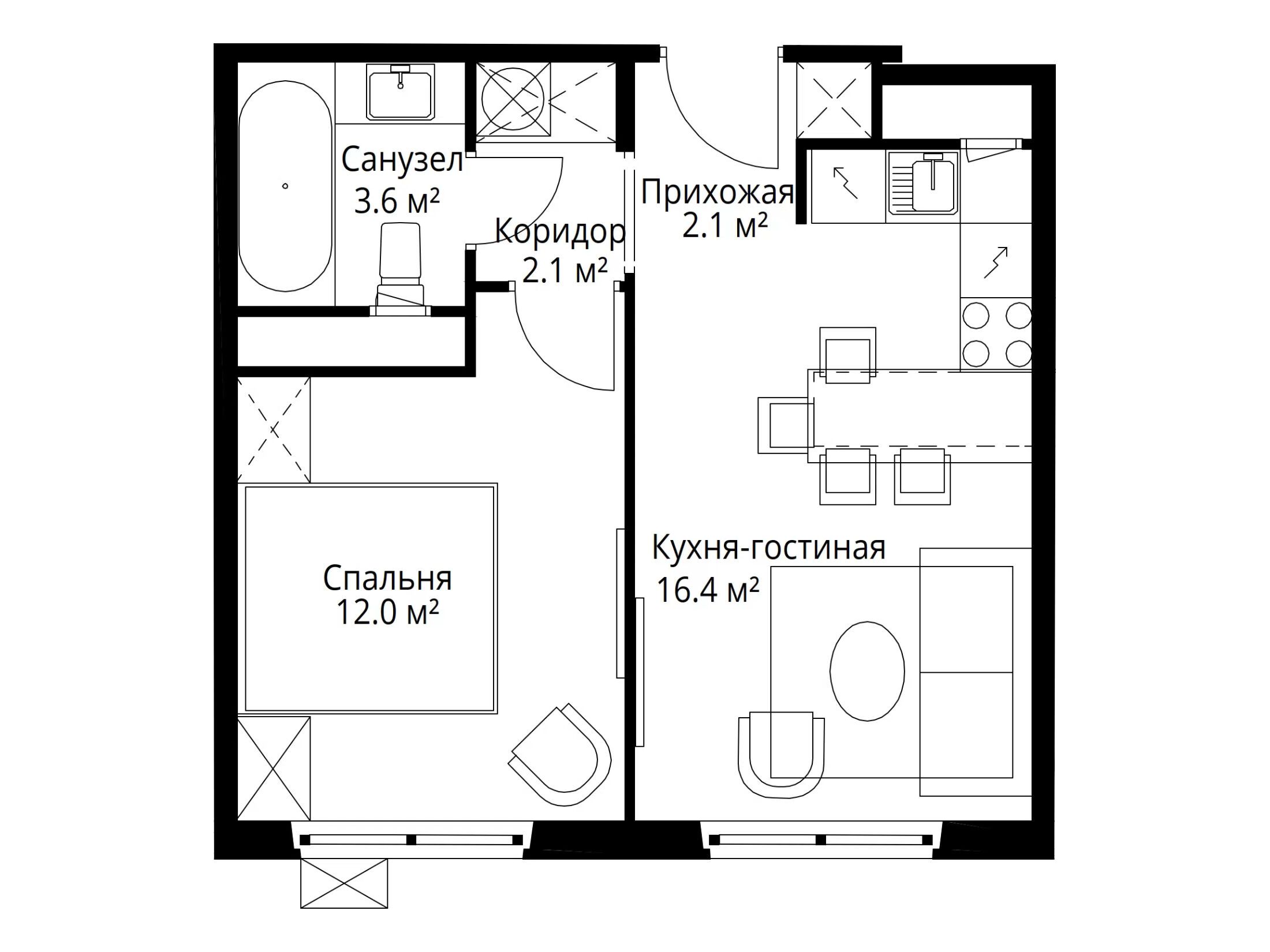 1-комнатная, 36.40 м²