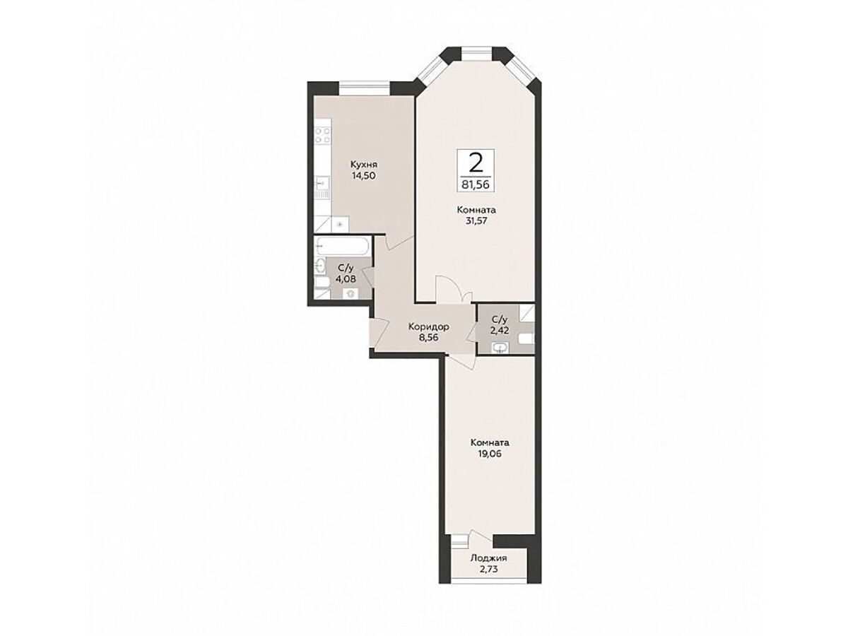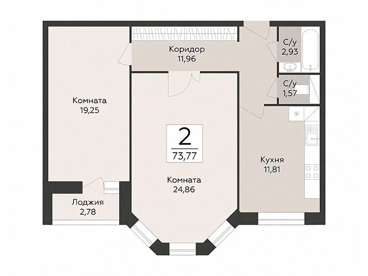2-комнатная, 73.66 м²