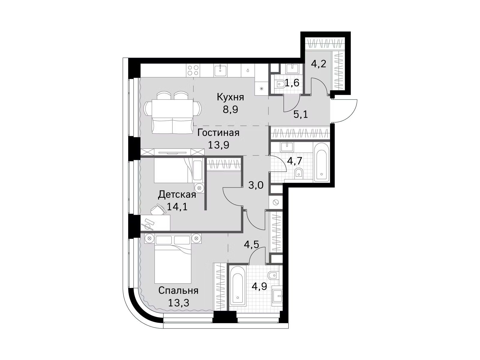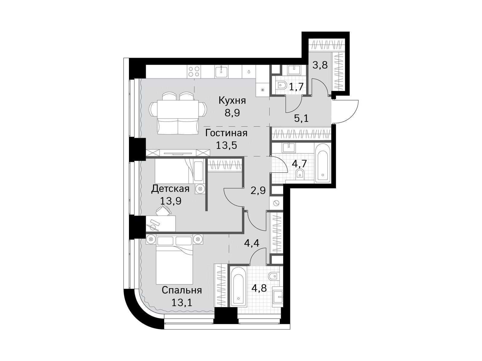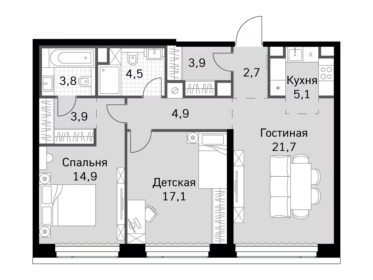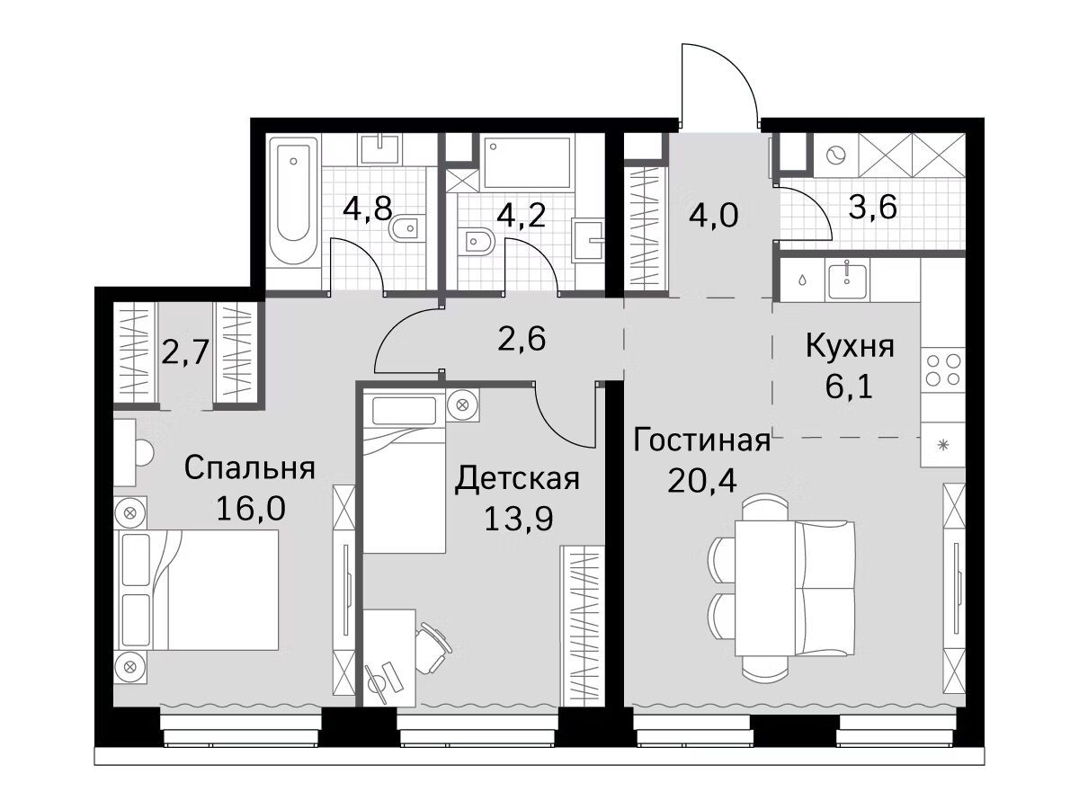 3-комнатная квартира, 78.30 м², 40 из 46 эт.
