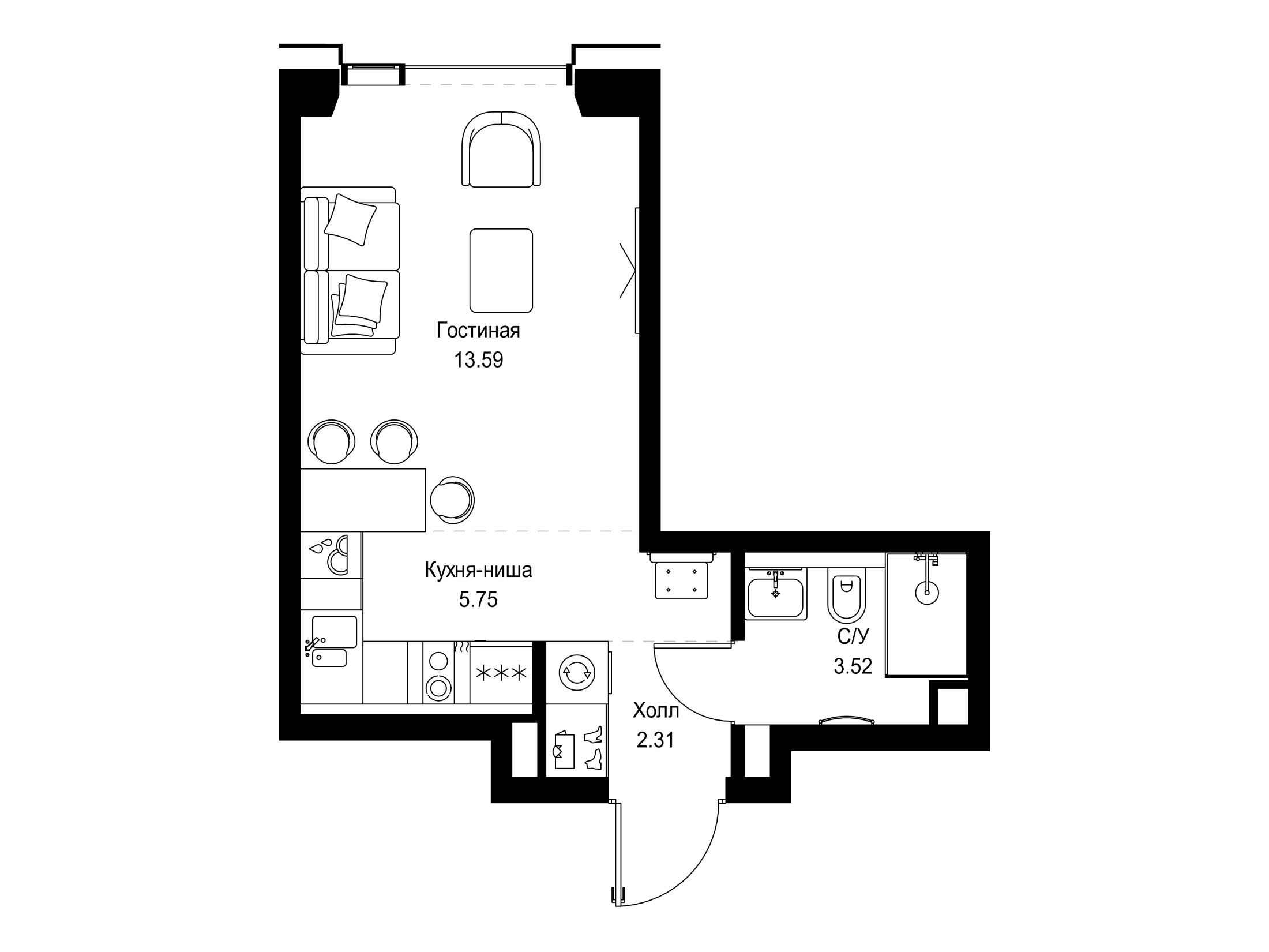 Студия, 23.82 м²