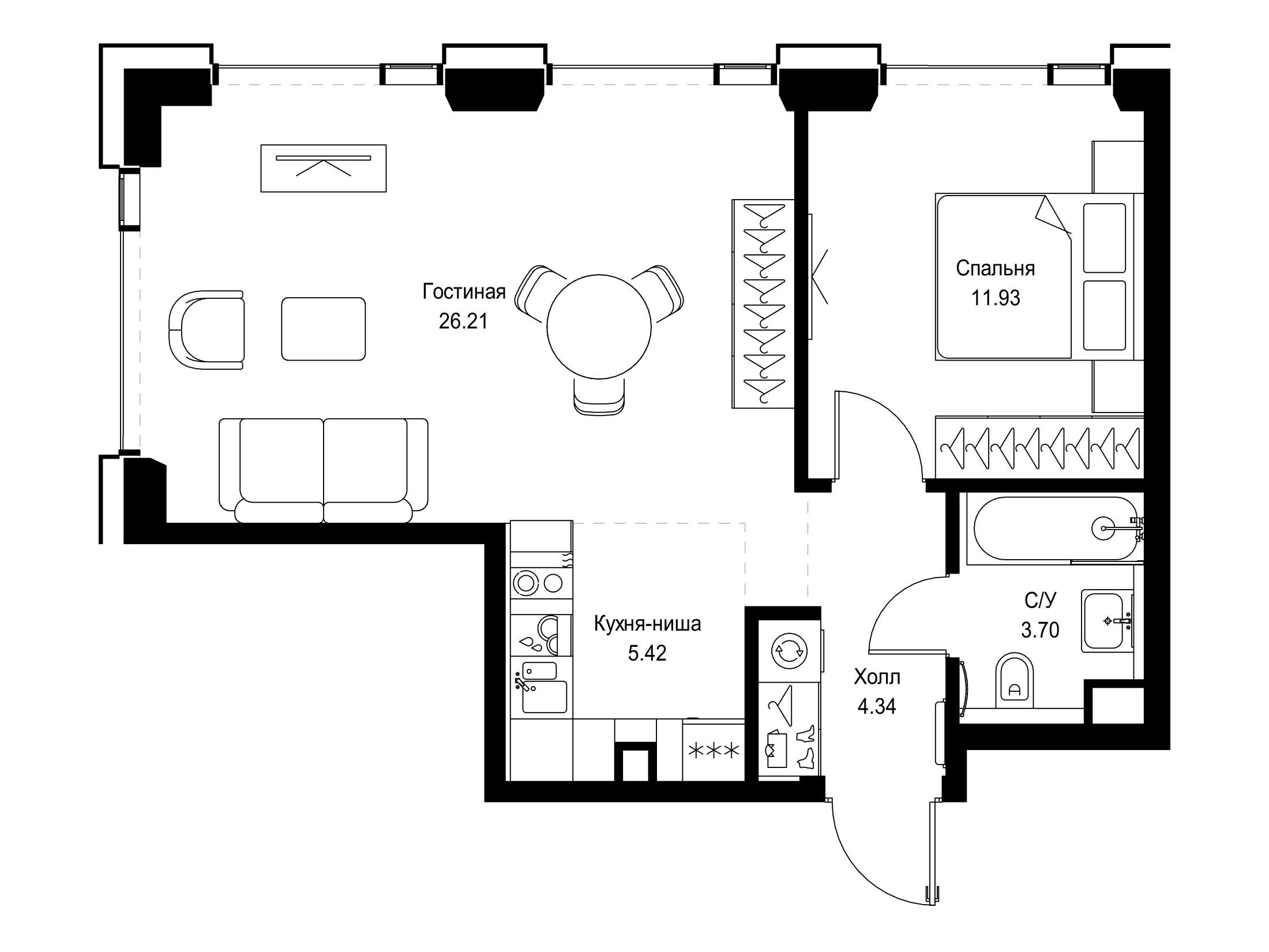 1-комнатная, 35.48 м²