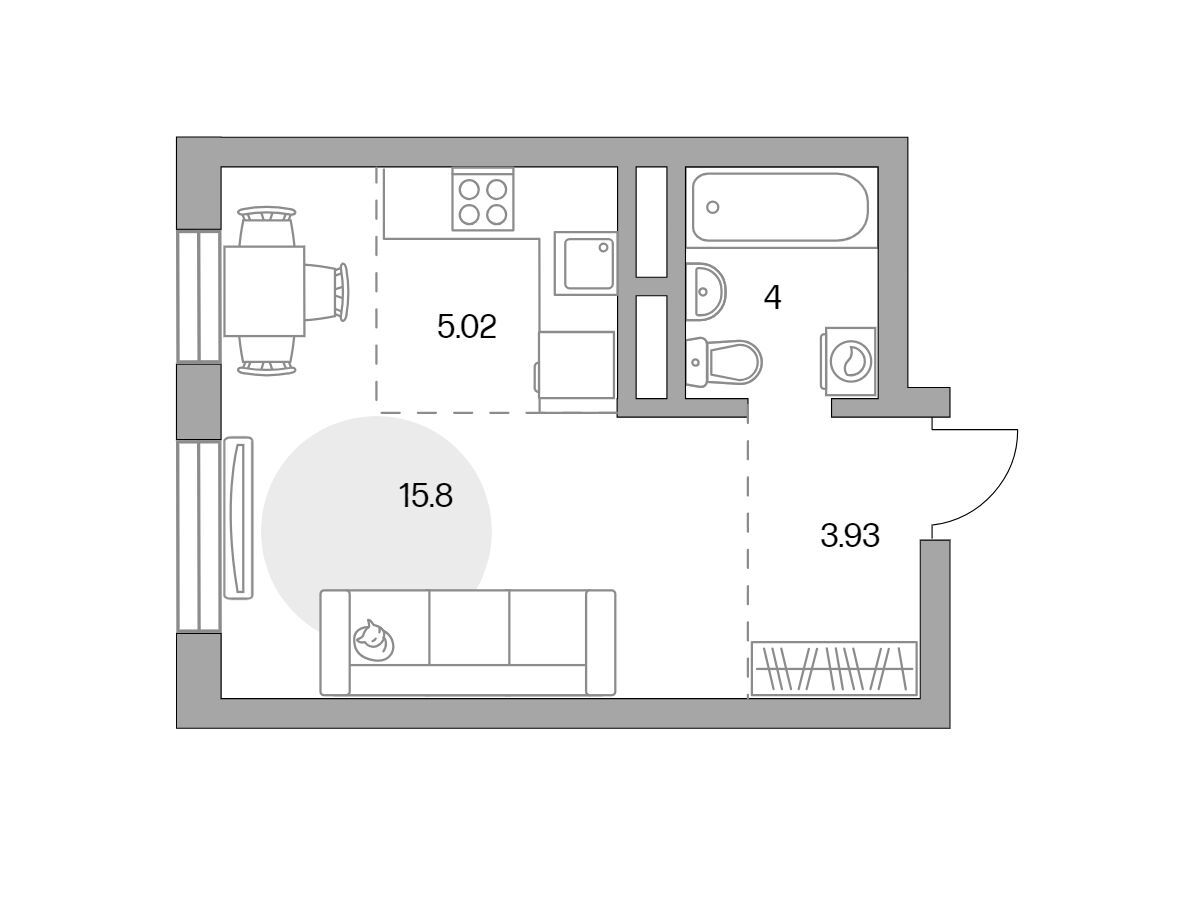 Студия, 28.75 м²