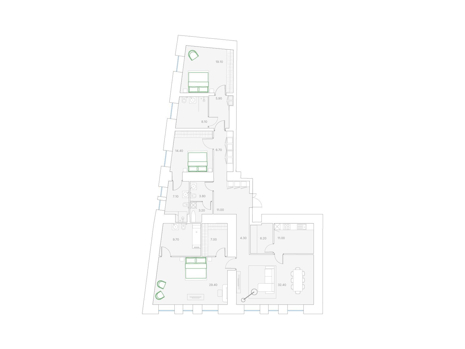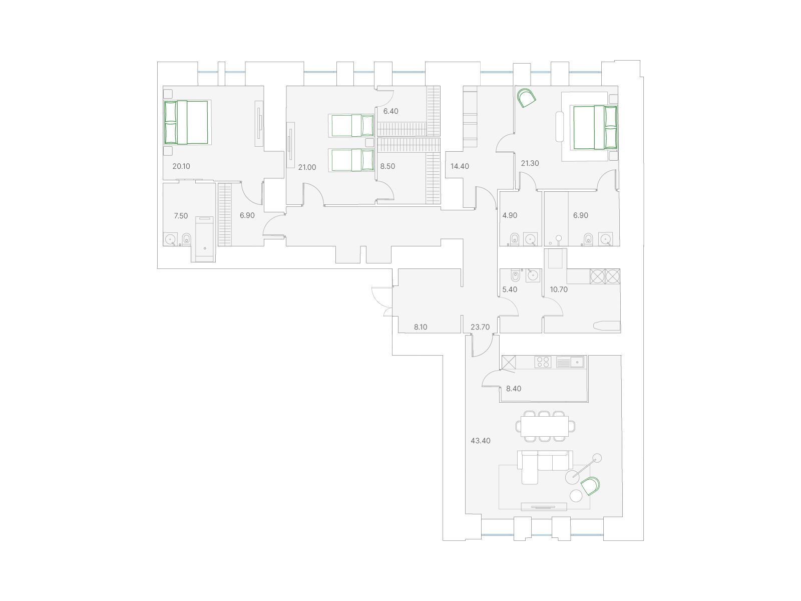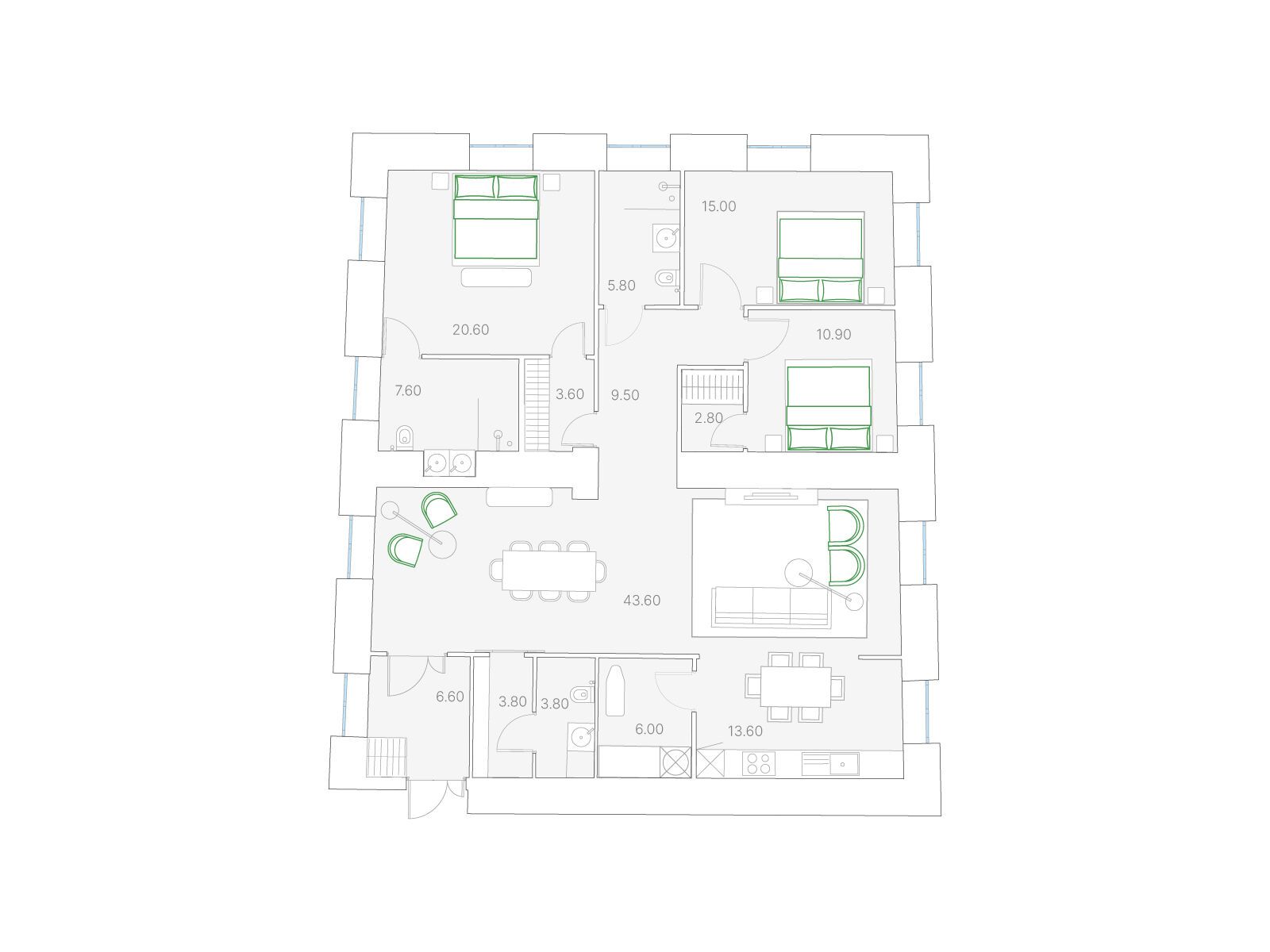 3-комнатная, 134.00 м²