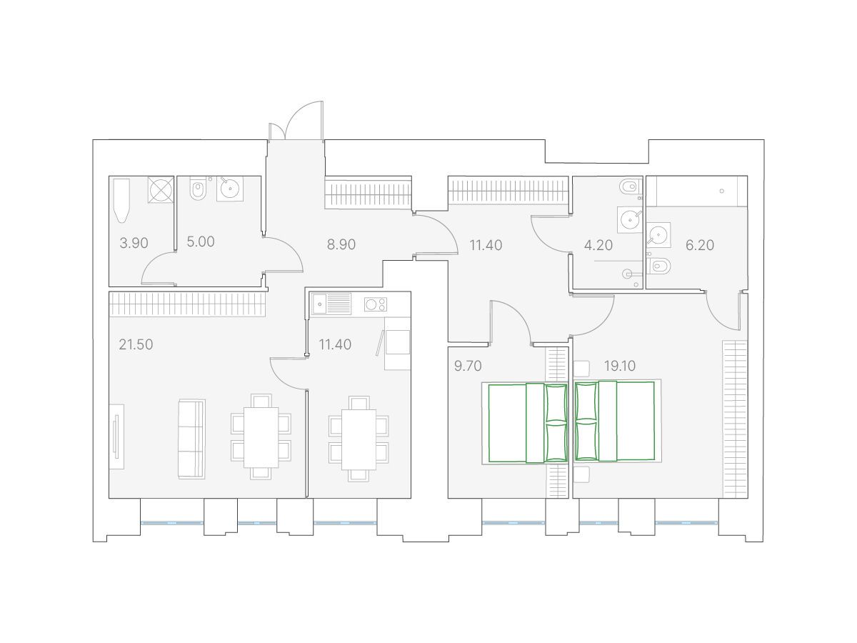 2-комнатная, 124.00 м²