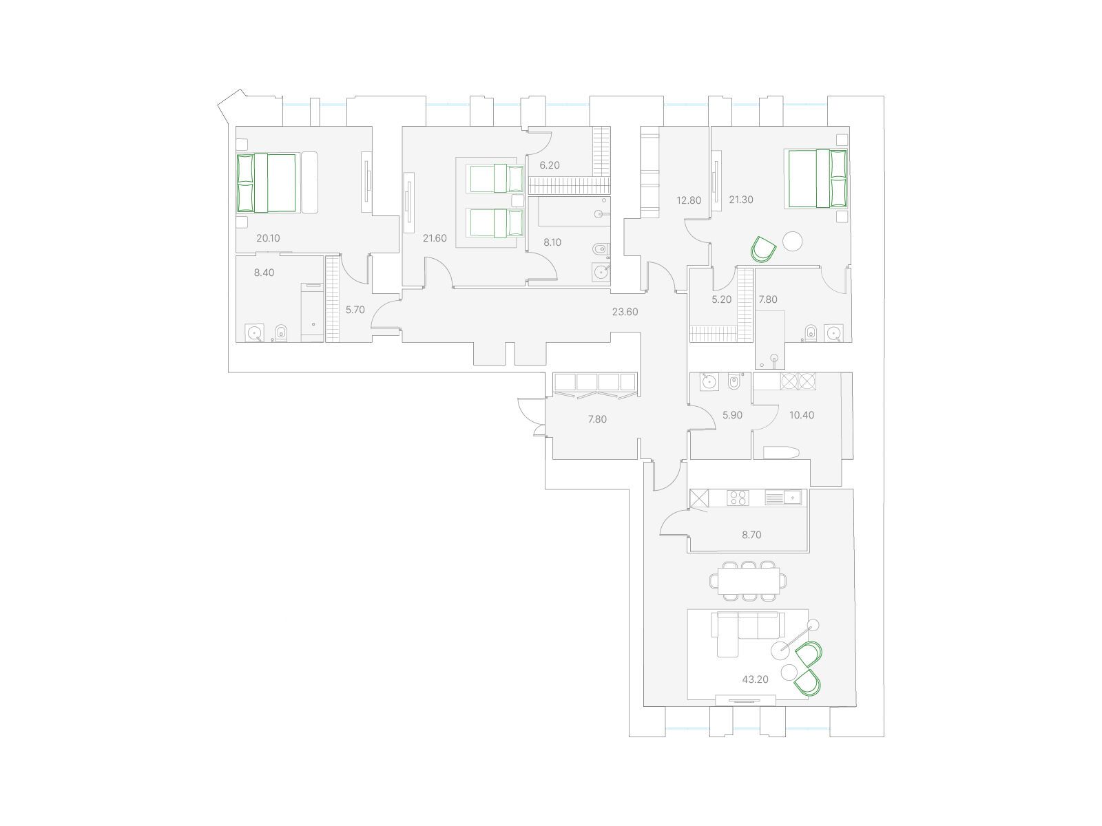 3-комнатная квартира, 179.00 м², 4 из 6 эт.