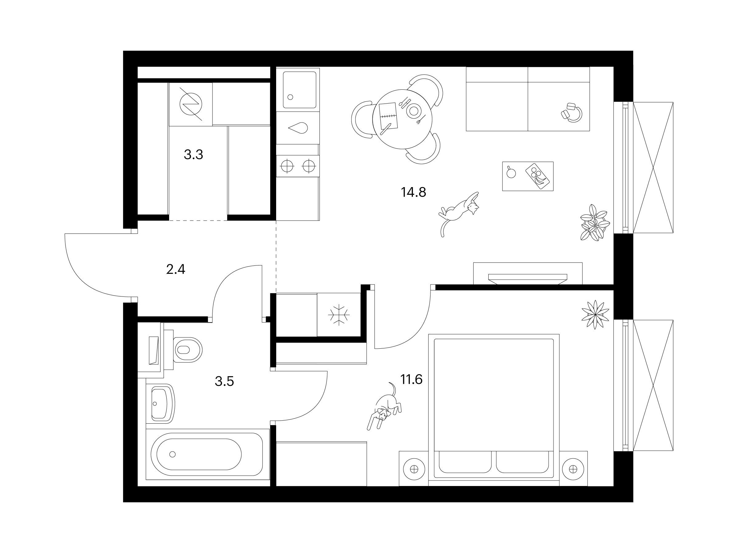 1-комнатная, 35.00 м²