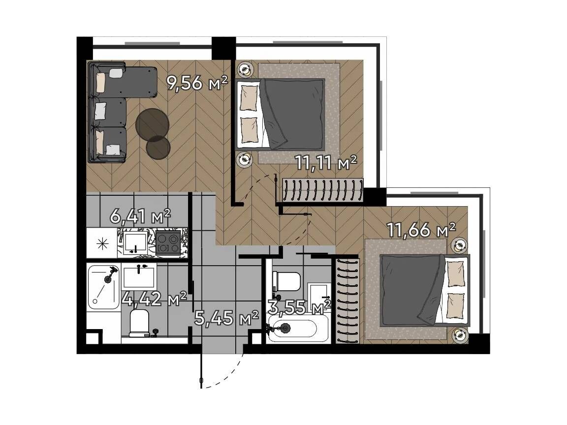 2-комнатная квартира, 56.99 м², 3 из 16 эт.