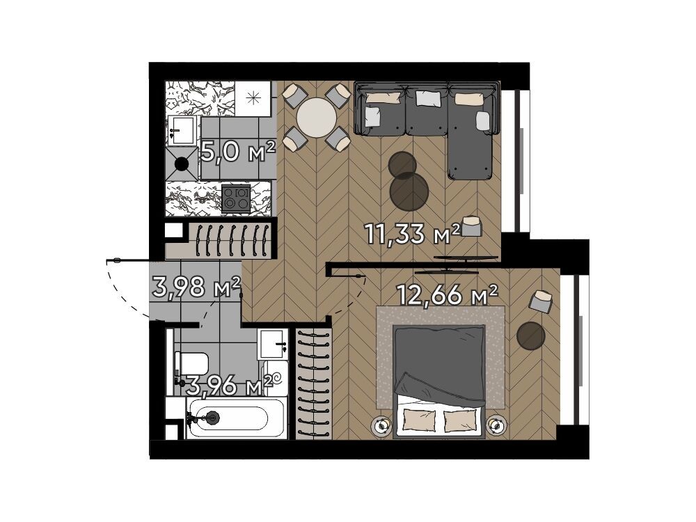 1-комнатная квартира, 38.47 м², 3 из 16 эт.