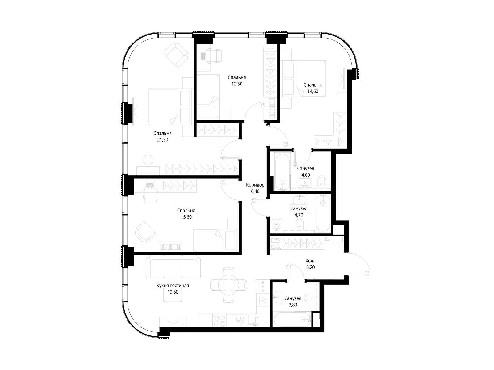4-комнатная квартира, 107.10 м², 7 из 30 эт.