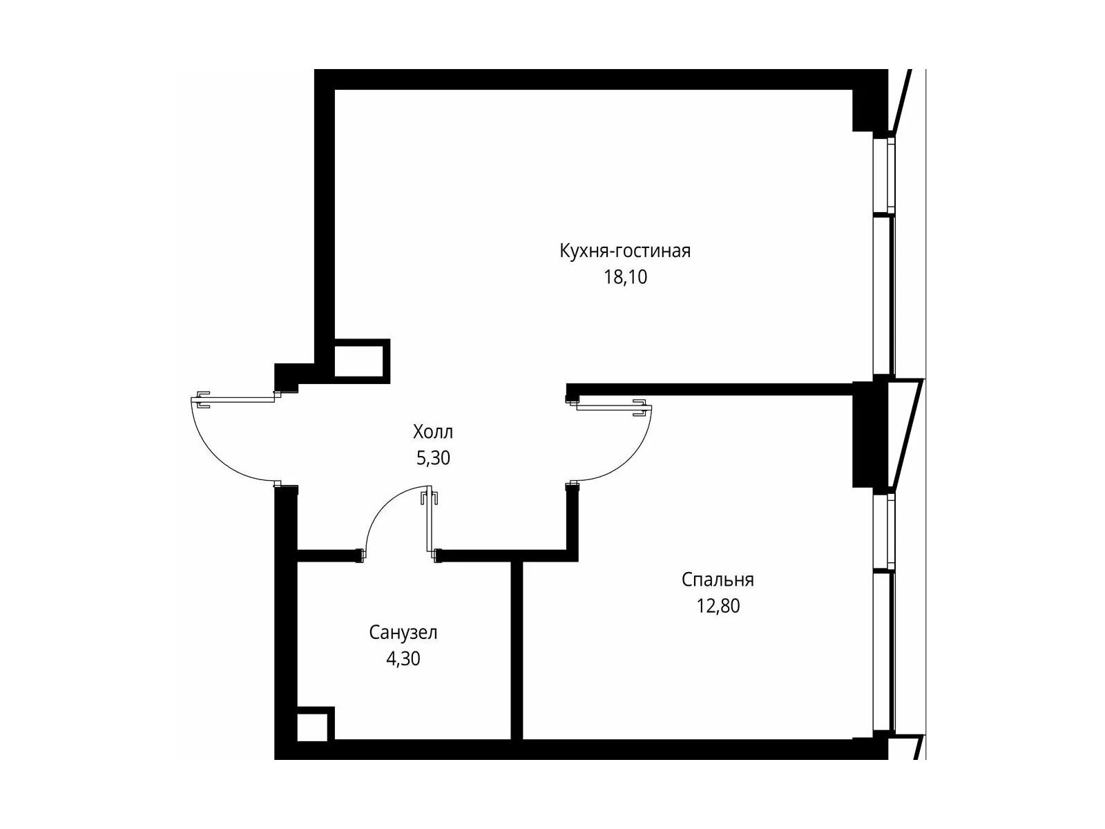 1-комнатная, 40.50 м²
