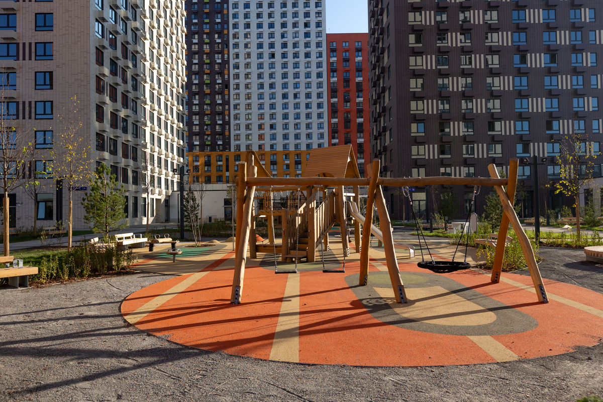 В проекте предусмотрена медленная зона для электросамокатов — с 7 утра до полуночи при въезде на территорию квартала скорость электросамокатов автоматически снижается до 15 км/ч.