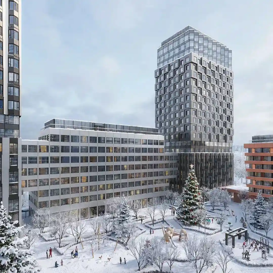 В проект входят монолитные дома, два детских сада и подземный паркинг. На территории будет городская школа. Во дворах мы построим уютные парки с детскими площадками и местами для отдыха. Чуть дальше от домов мы разместим спортивные площадки, чтобы шум от них не мешал жителям. В тихих и быстрых лифтах будут усилители связи, чтобы она не прерывалась и жители продолжали говорить по телефону или проверять соцсети даже перемещаясь между этажами.