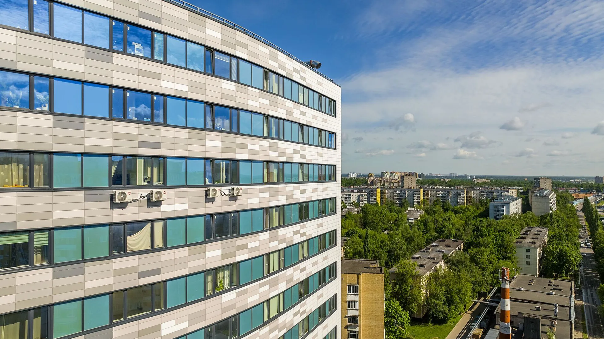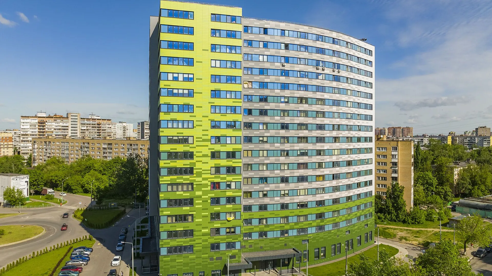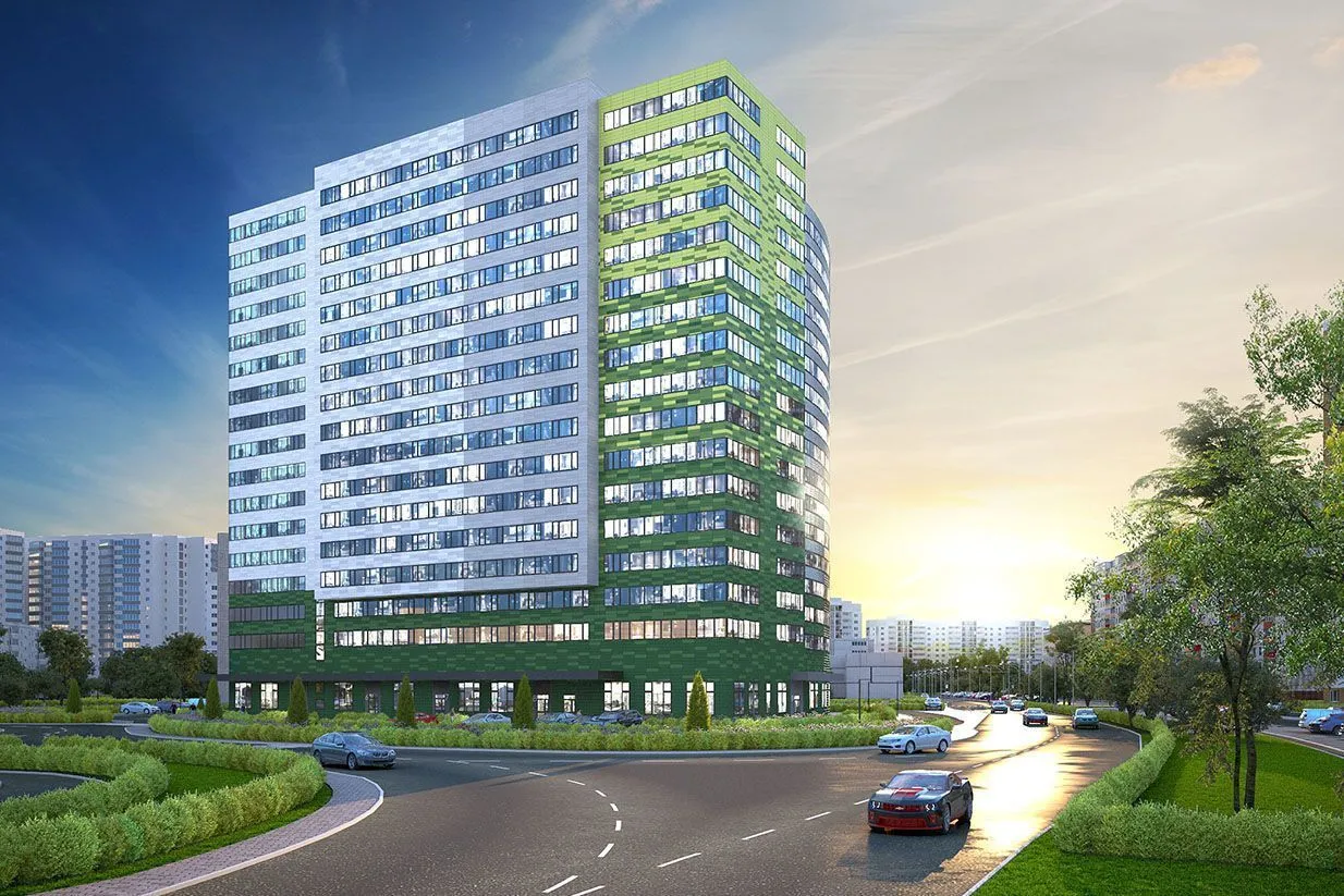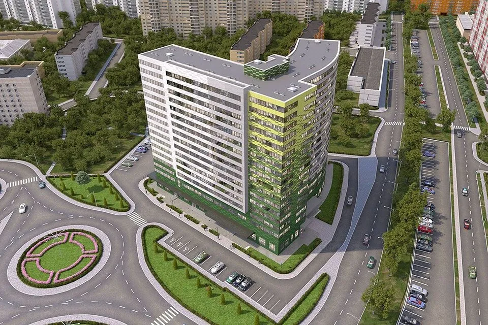 17‑этажное монолитно‑кирпичное здание комплекса выполнено в современном архитектурном стиле: стеклянный фасад придаёт строению лёгкость и динамичность, а продуманные пропорции гармонично вписывают его в городской ландшафт Королёва. В здании разместились 825 апартаментов‑студий площадью от 19 до 57 кв. м — компактные, но функциональные пространства, готовые к заселению благодаря чистовой отделке. Высота потолков достигает 2,8 м, что создаёт ощущение простора даже в небольших помещениях.