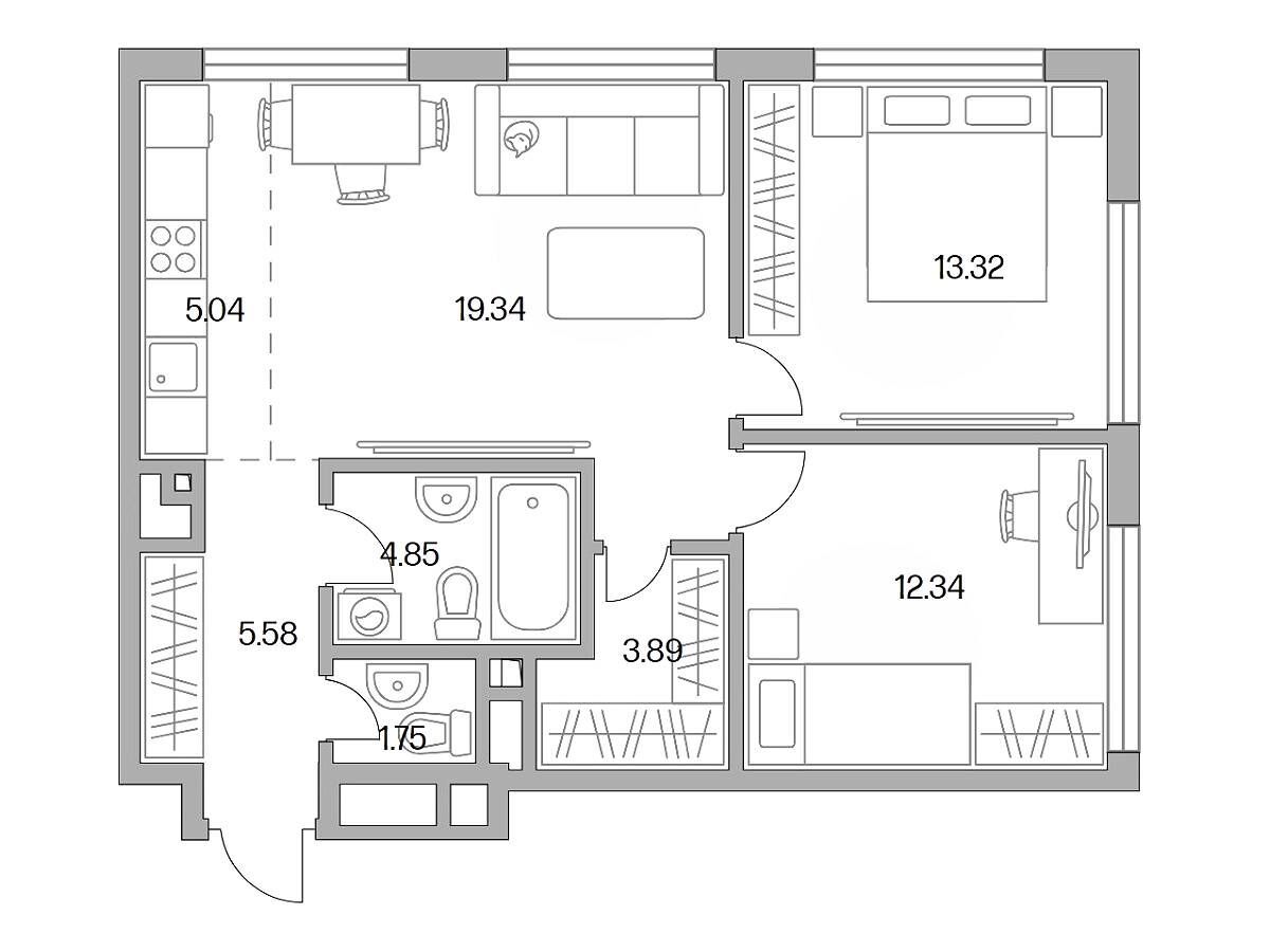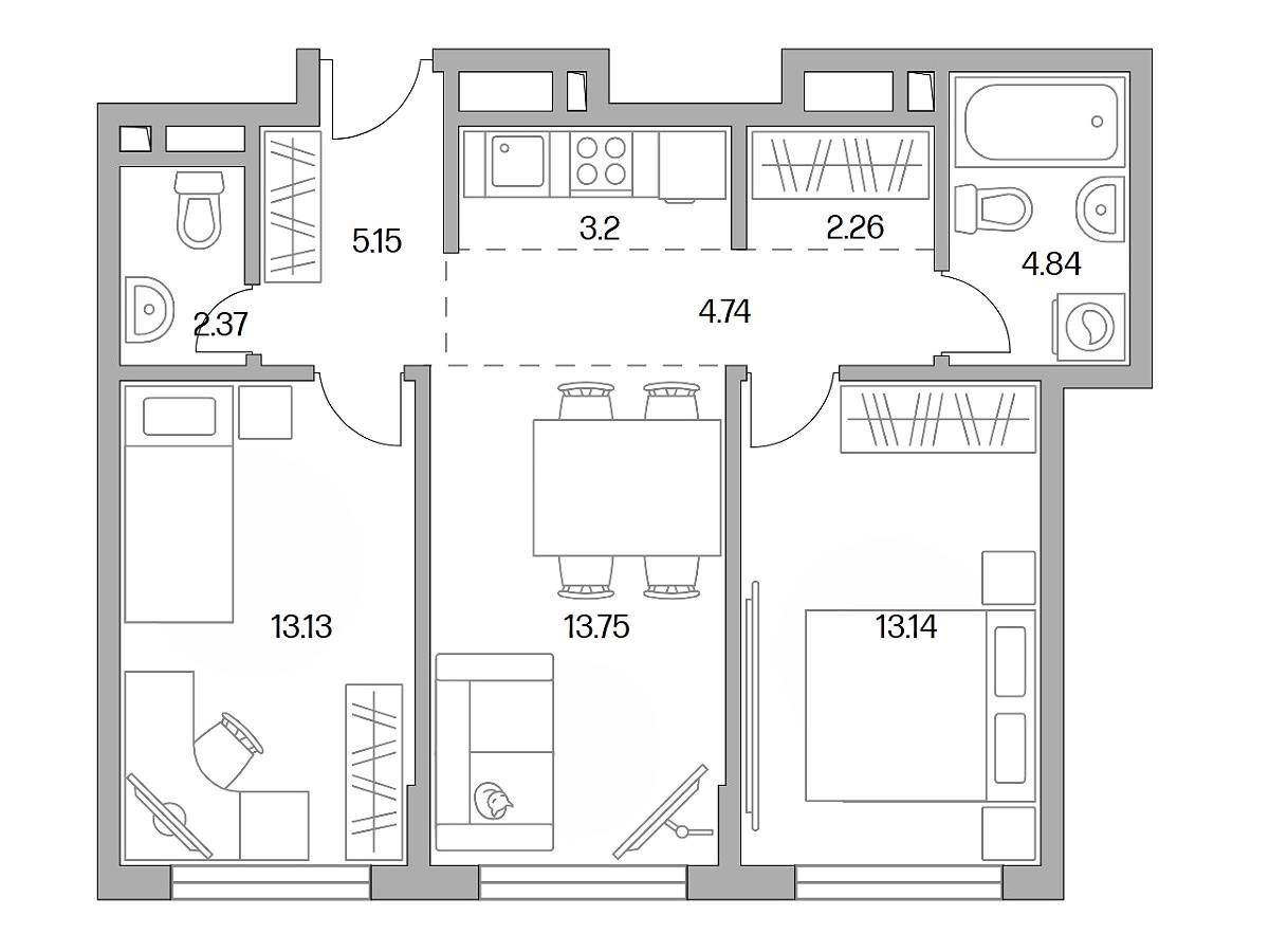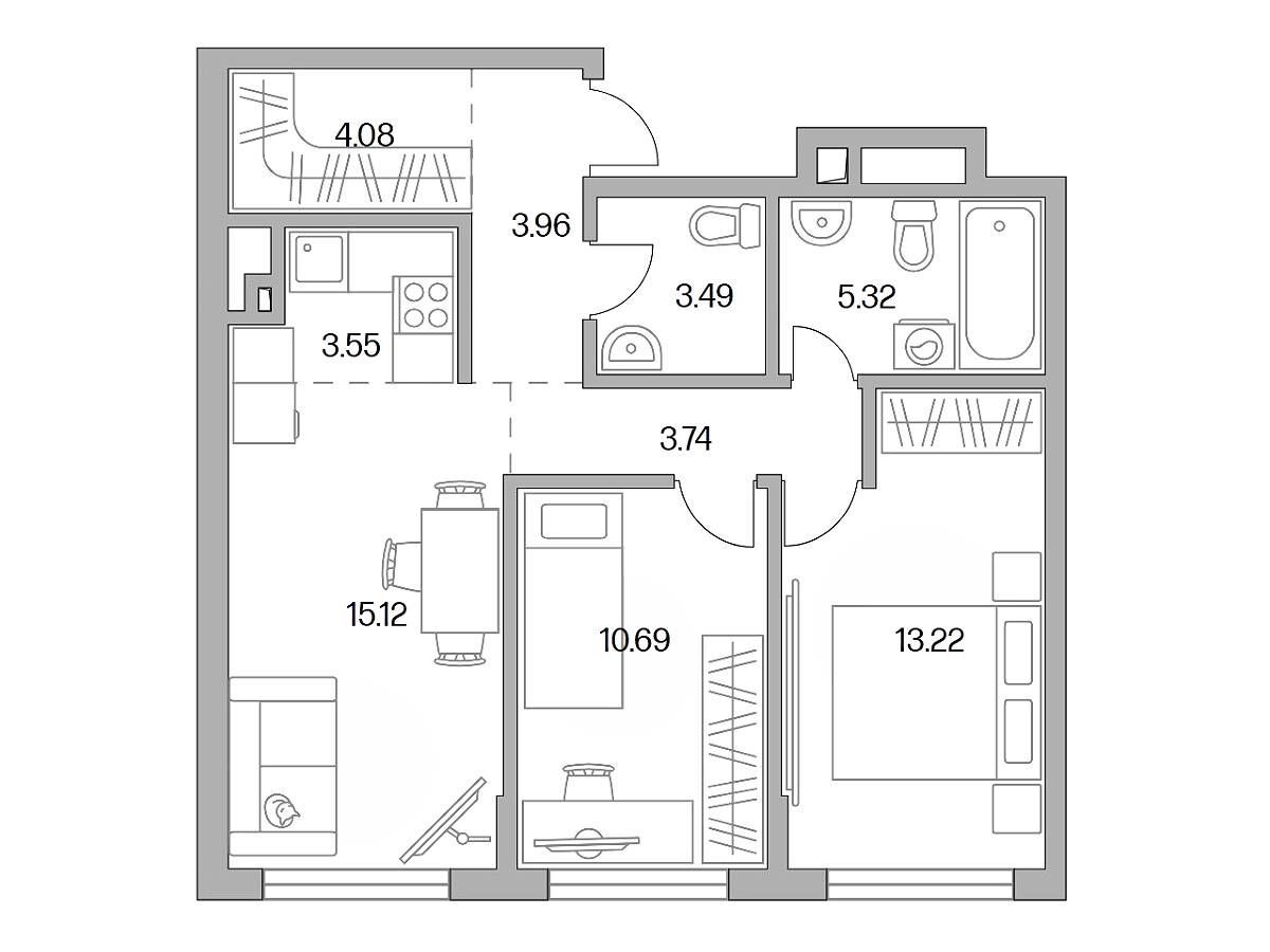 В комплексе представлены квартиры от студий до 4-комнатных, с различными вариантами планировок и увеличенным остеклением. Площадь жилья варьируется от 19 до 66 квадратных метров, лоты на верхних этажах обладают потрясающими видами на город и Москву-реку.