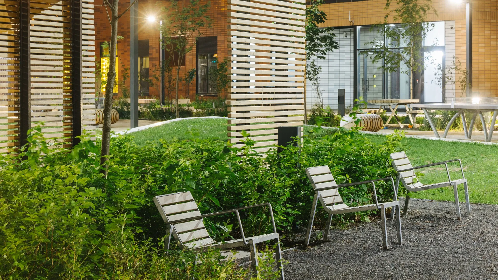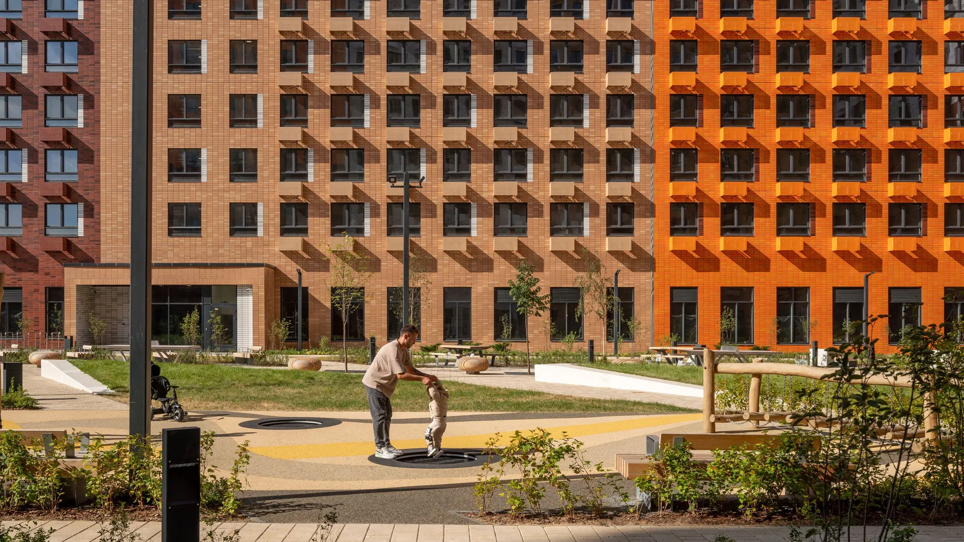 Проект состоит из корпусов с подземными паркингами, школа и детский сад. В зелёных дворах-парках будут места для отдыха, современные детские и спортивные площадки. На первых этажах откроются магазины, кафе и другие сервисы — за кофе и свежим хлебом к завтраку можно будет просто спуститься на лифте.