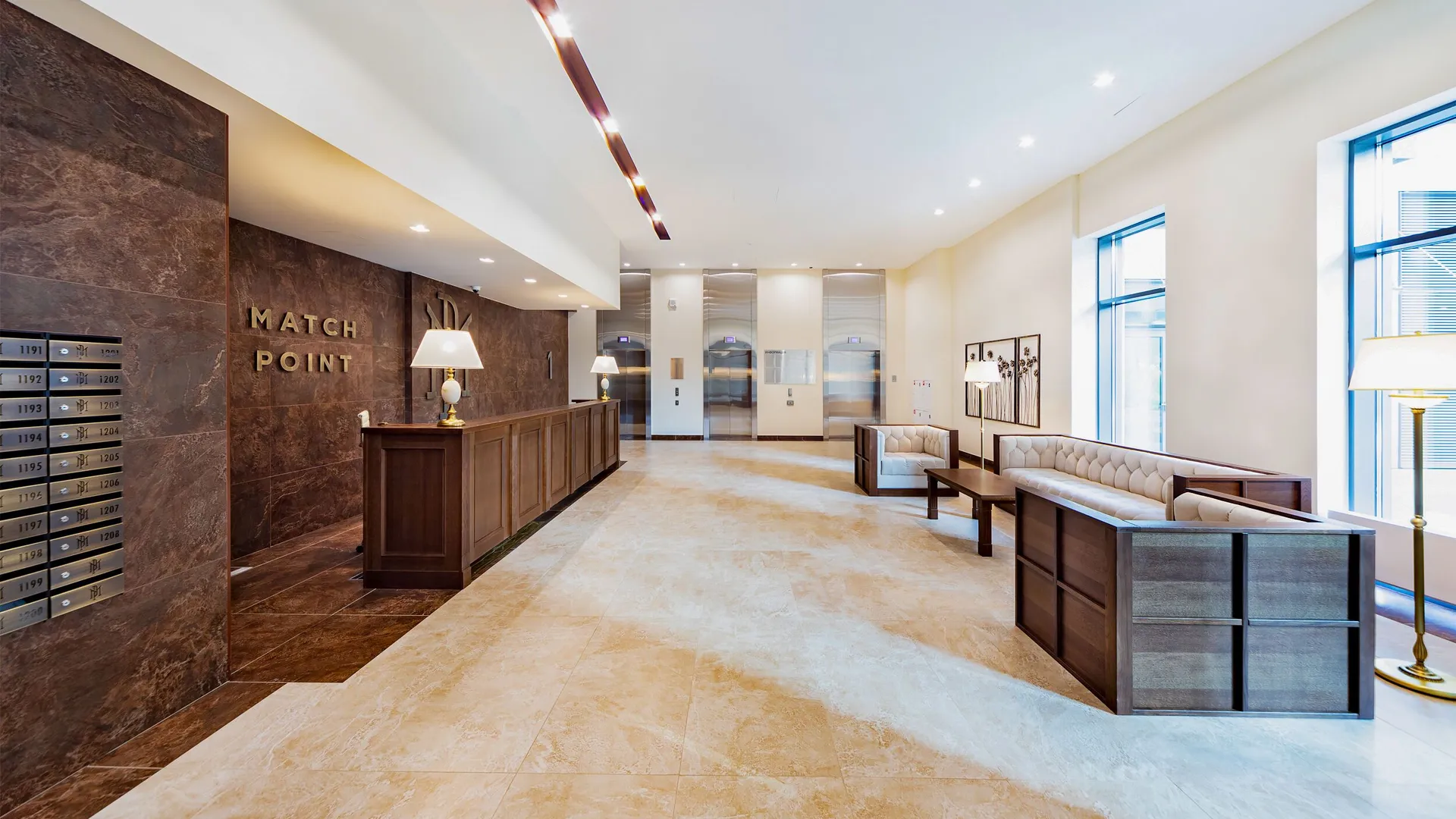 Квартал апартаментов Матч Поинт расположен в Москве по адресу: улица Василисы Кожиной, дом 13. Проект бизнес‑класса реализован группой компаний «Галс‑Девелопмент» при участии подрядчика ООО «Волей Гранд». Комплекс введён в эксплуатацию в четвёртом квартале 2019 года.