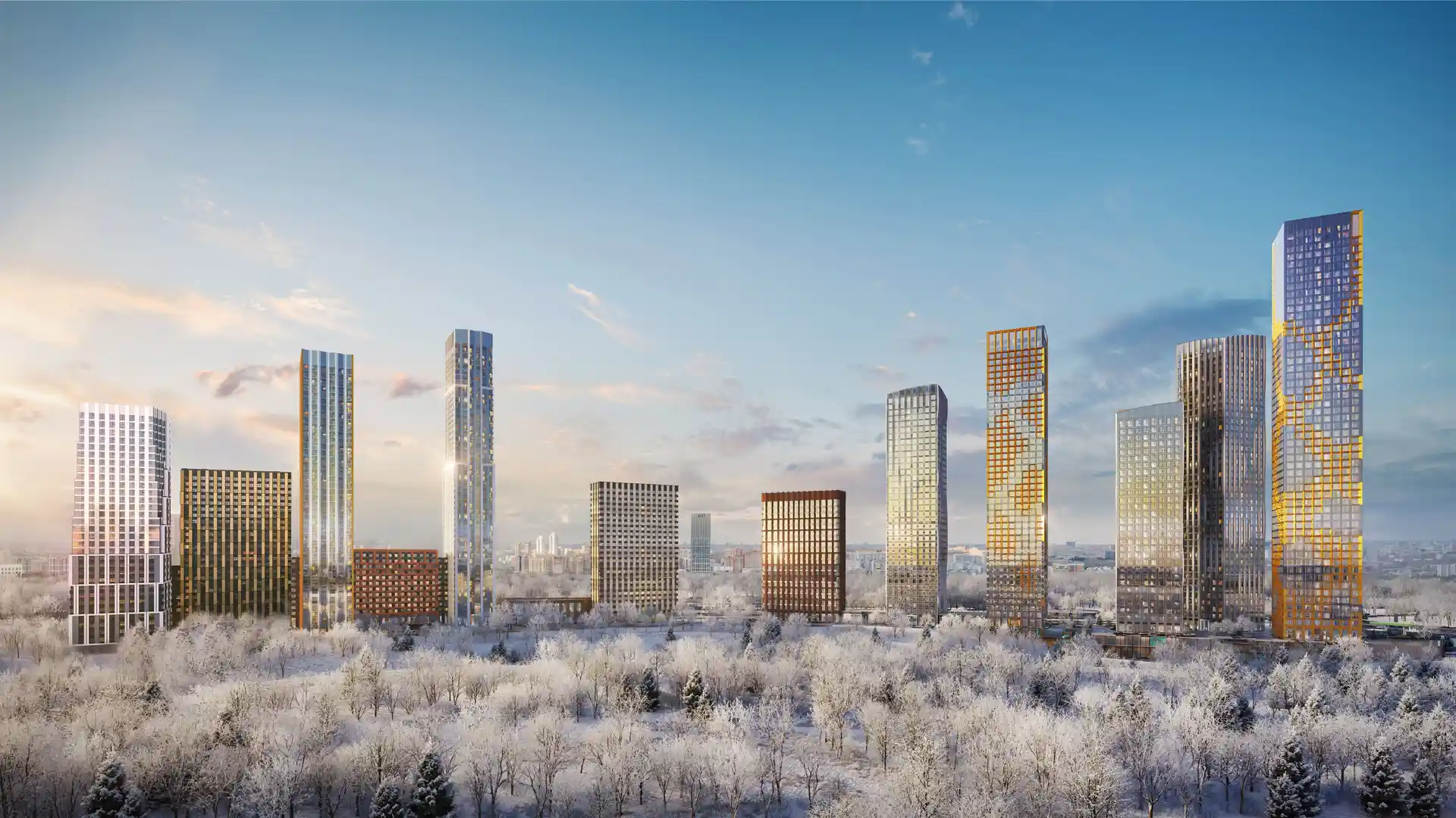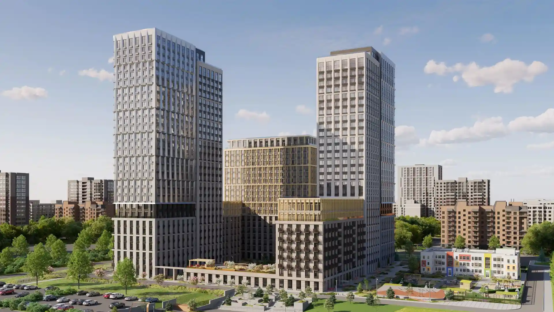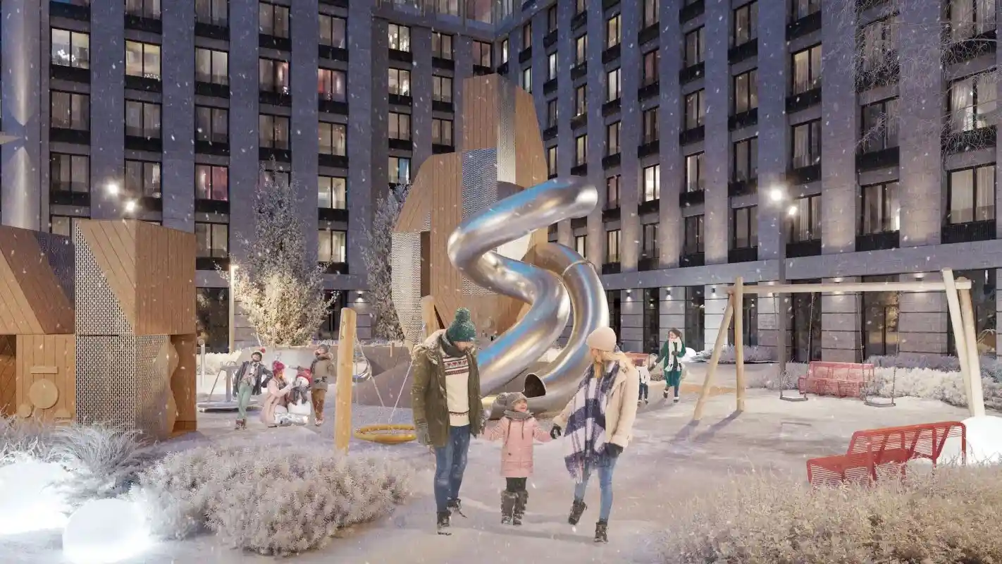 Отличная концепция по застройки комплекса! Мне всегда нравилось, когда дома высокие, в комплексе от 20 до 23 этажей. На первых этажах будут коммерческие организации. Дома в современной архитектурой. По проекту выглядит все красиво. Посмотрим, что будет по завершению объекта.