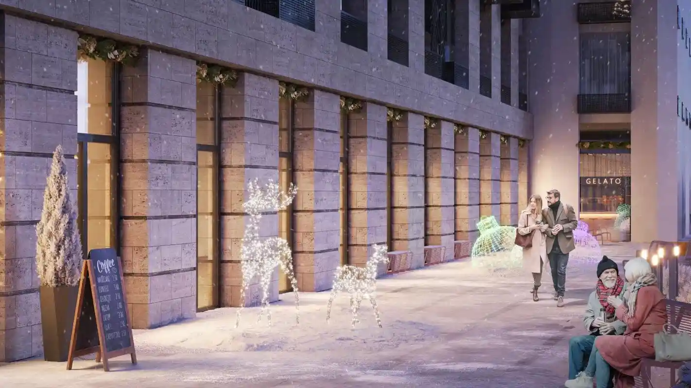 У подъездов будет два выхода: на улицу и во двор-парк. В наших дворах мы установим столы и лавочки со встроенными зарядными устройствами. Не нужно будет возвращаться домой, чтобы зарядить смартфон или ноутбук: можно весь день работать на свежем воздухе.