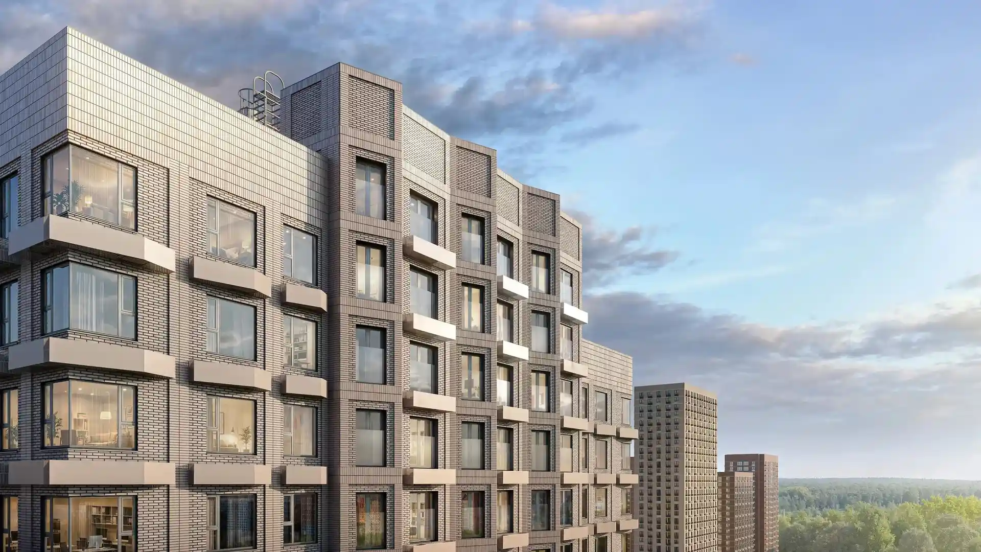 Дизайн проработан и внутри домов. На первых этажах — просторные и светлые лобби с дизайнерской отделкой. Здесь появятся зоны ожидания, скоростные лифты и помещение для хранения колясок и велосипедов.